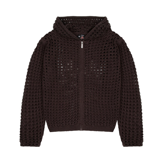 SAVE 50%"aziza" crochet zip up brown