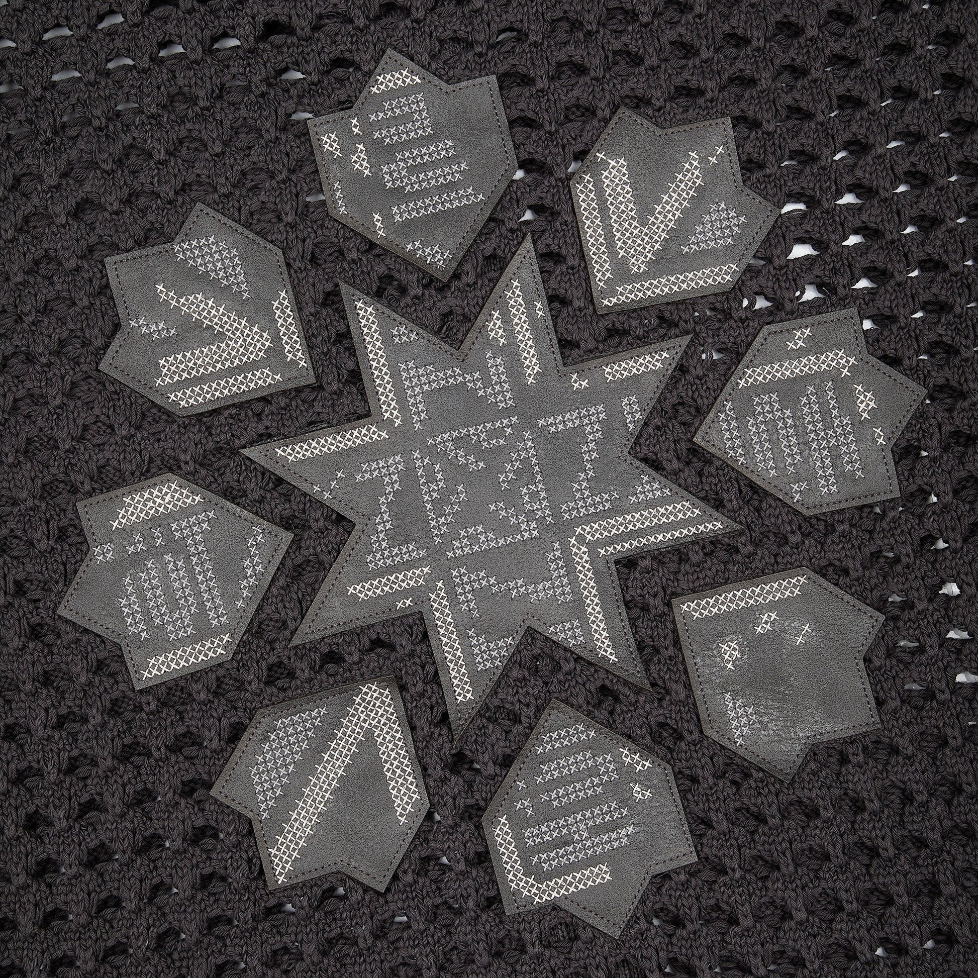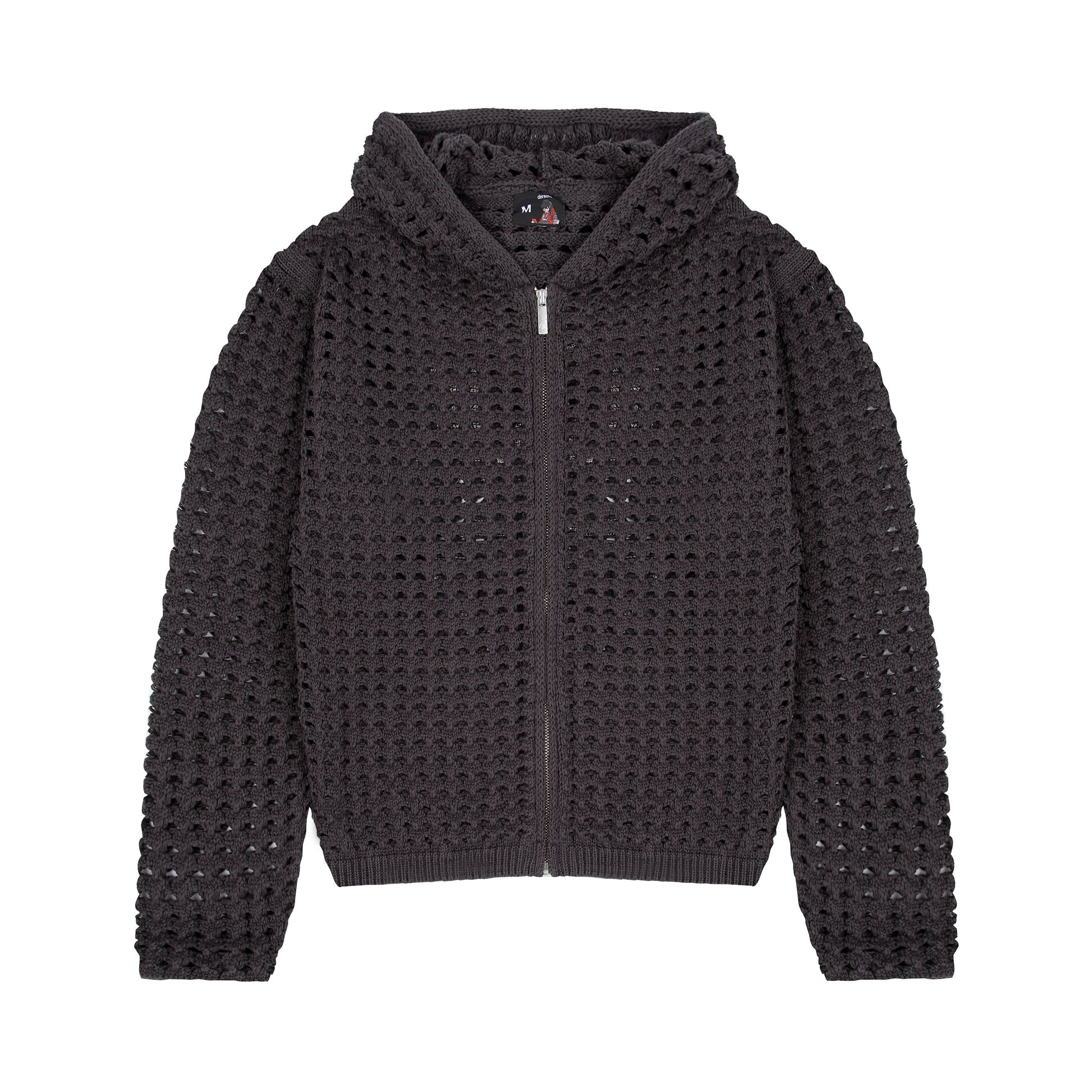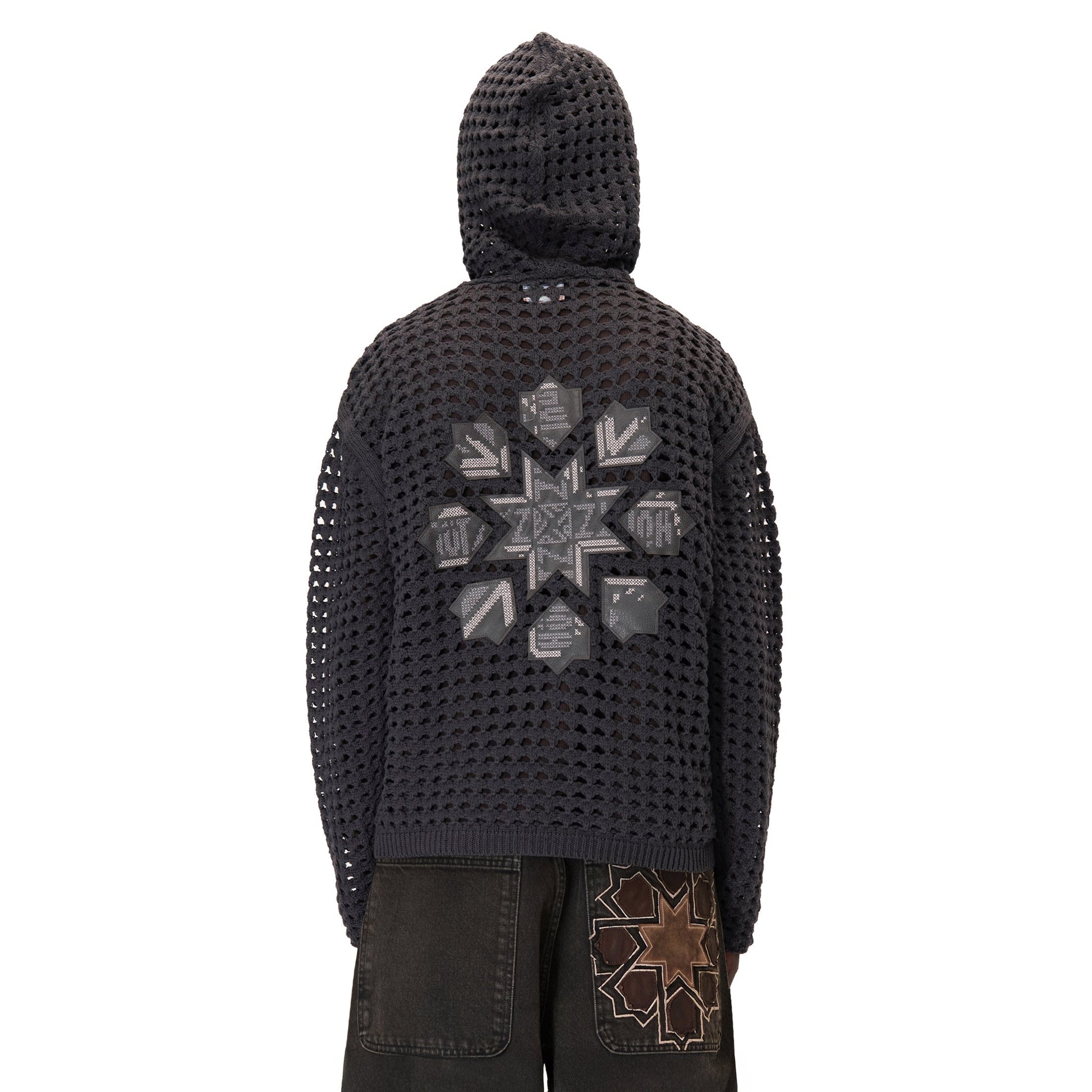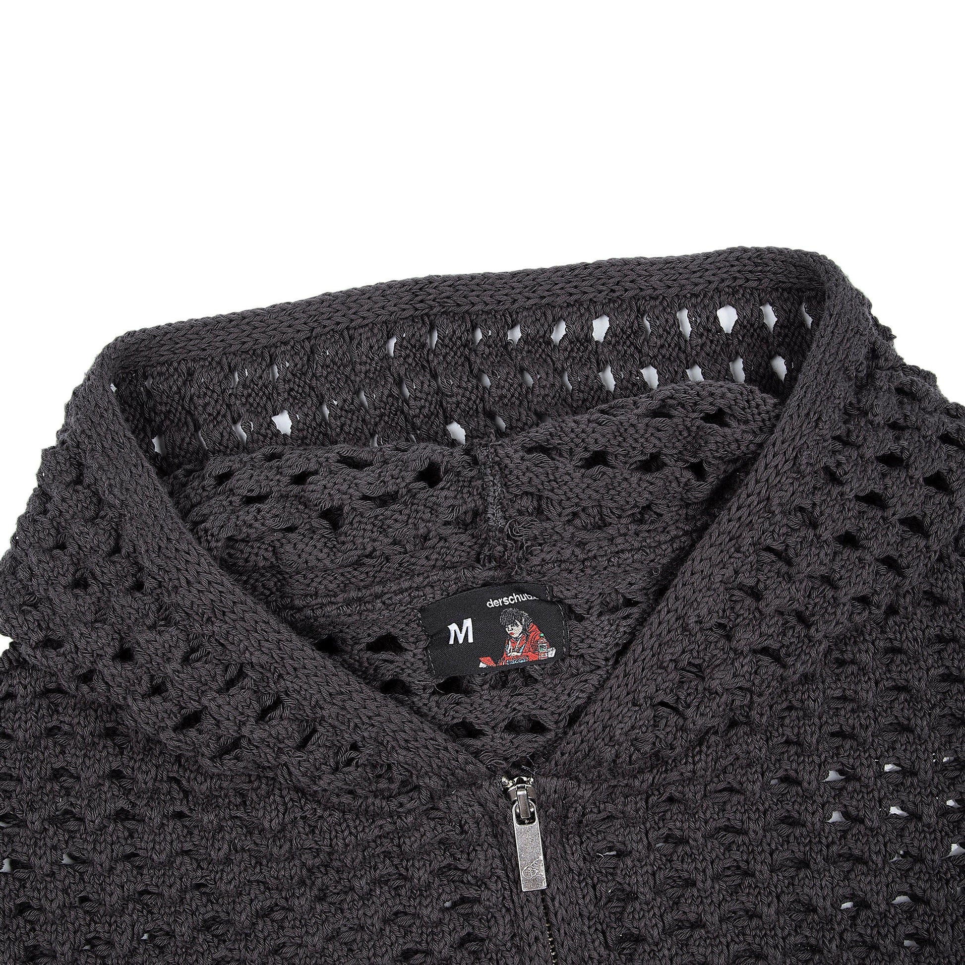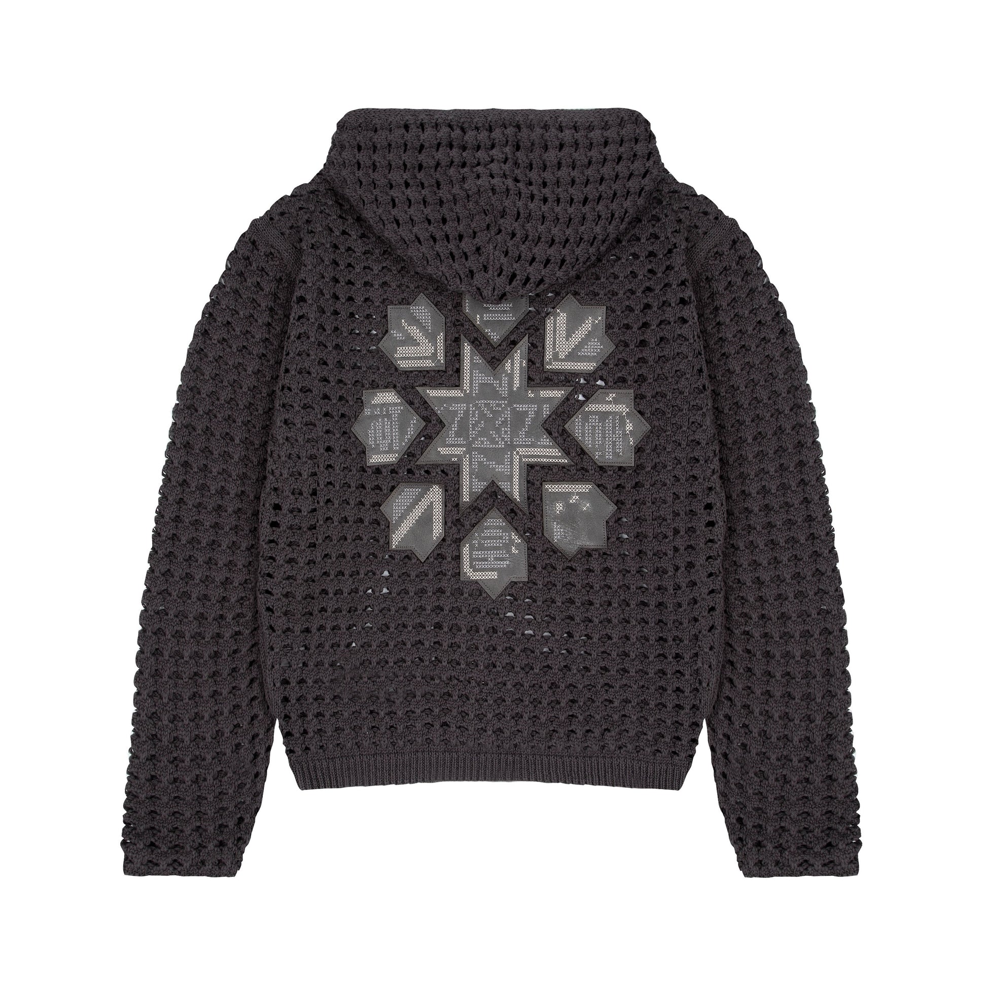 100% cotton / openwork knitting / vegan leather applique embroidery on back / with double-slided YKK zipper / wash inside out / fits true to size