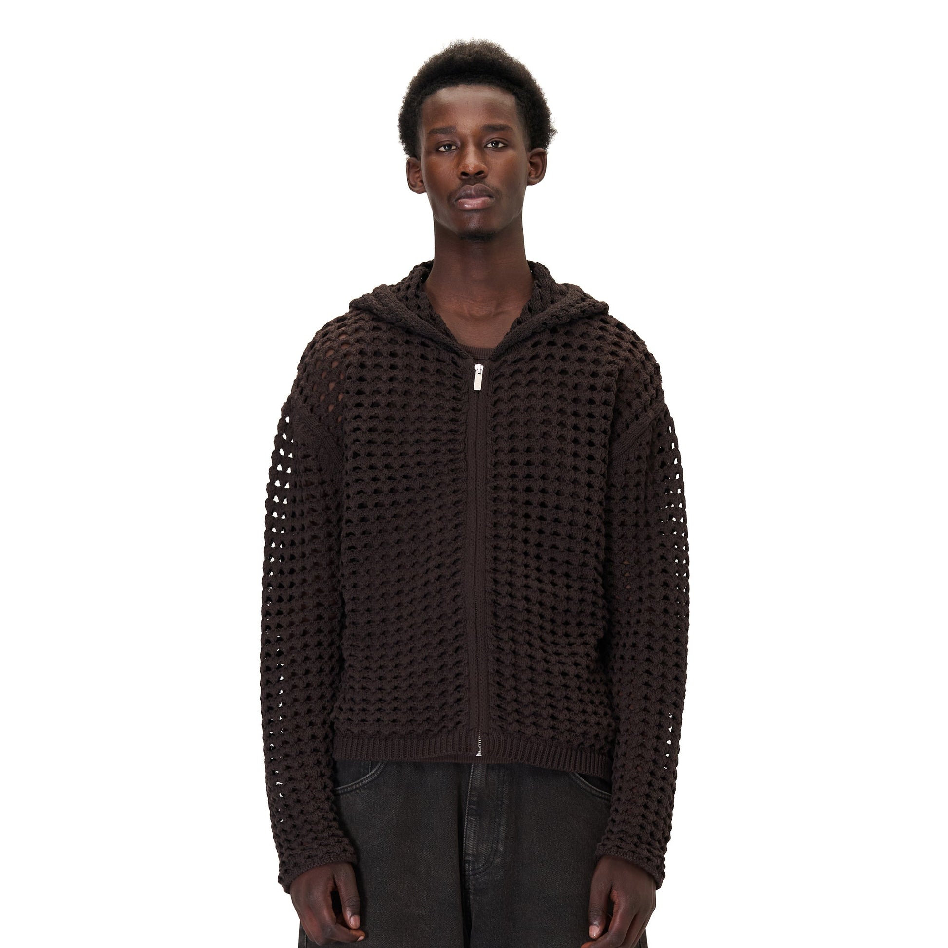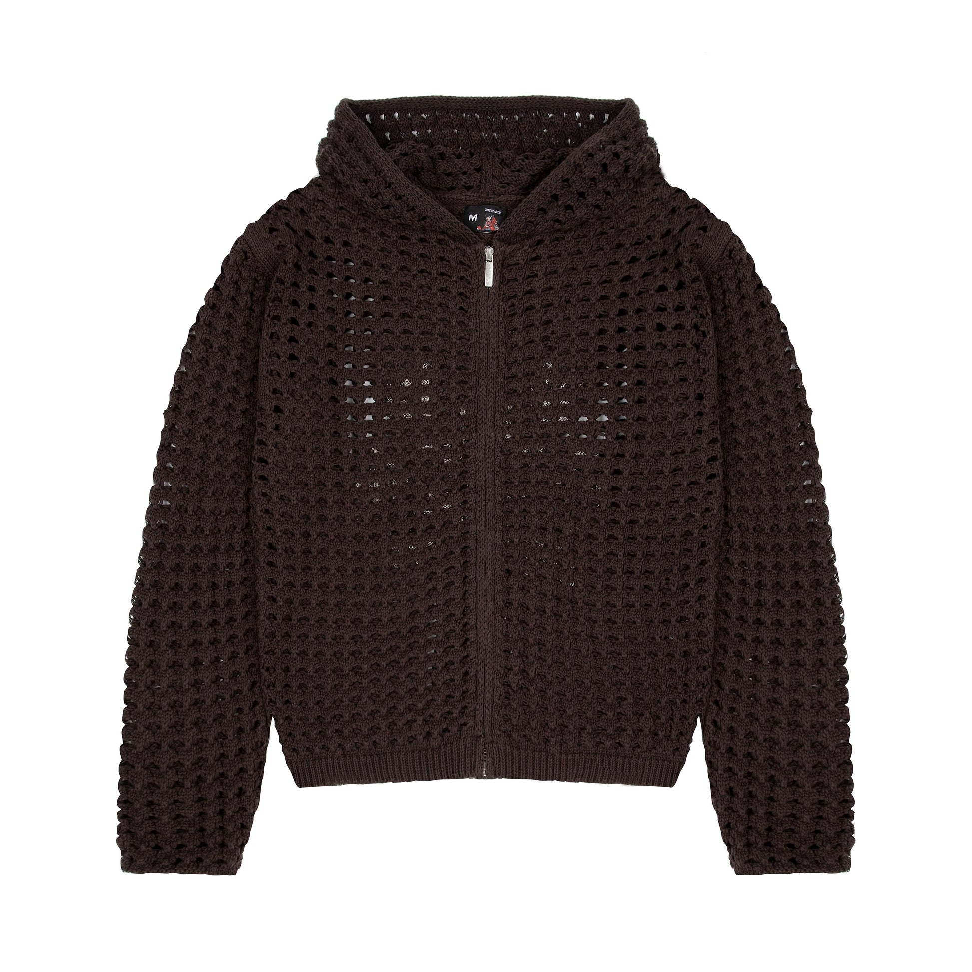 100% cotton / openwork knitting / vegan leather applique embroidery on back / with double-slided YKK zipper / wash inside out / fits true to size