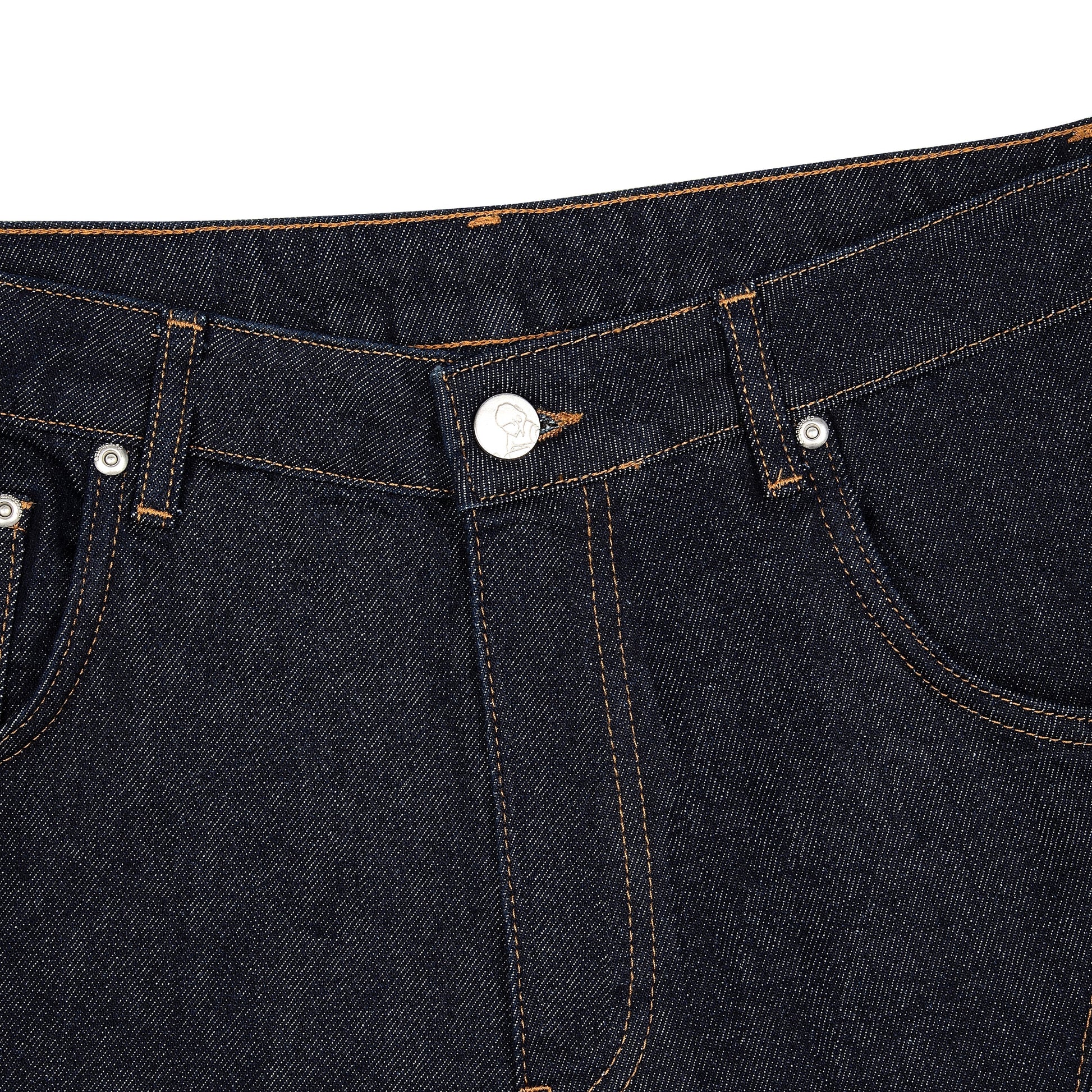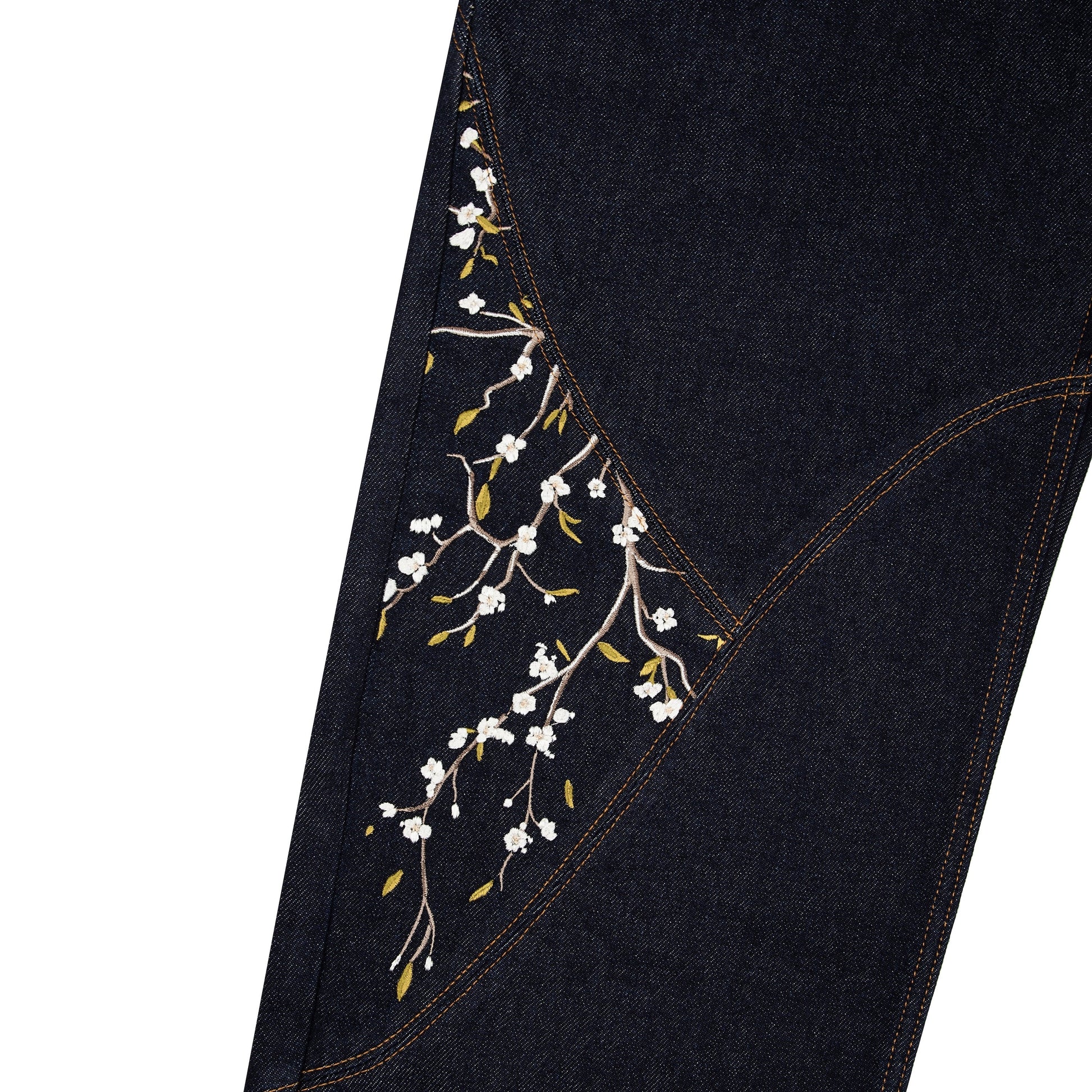 14,5oz raw denim / 100% cotton / made of different pieces / embroideries on front / embroidered leather patch / fabric may bleed or fade, wash inside out in cold water to preserve color and character / fits true to?size