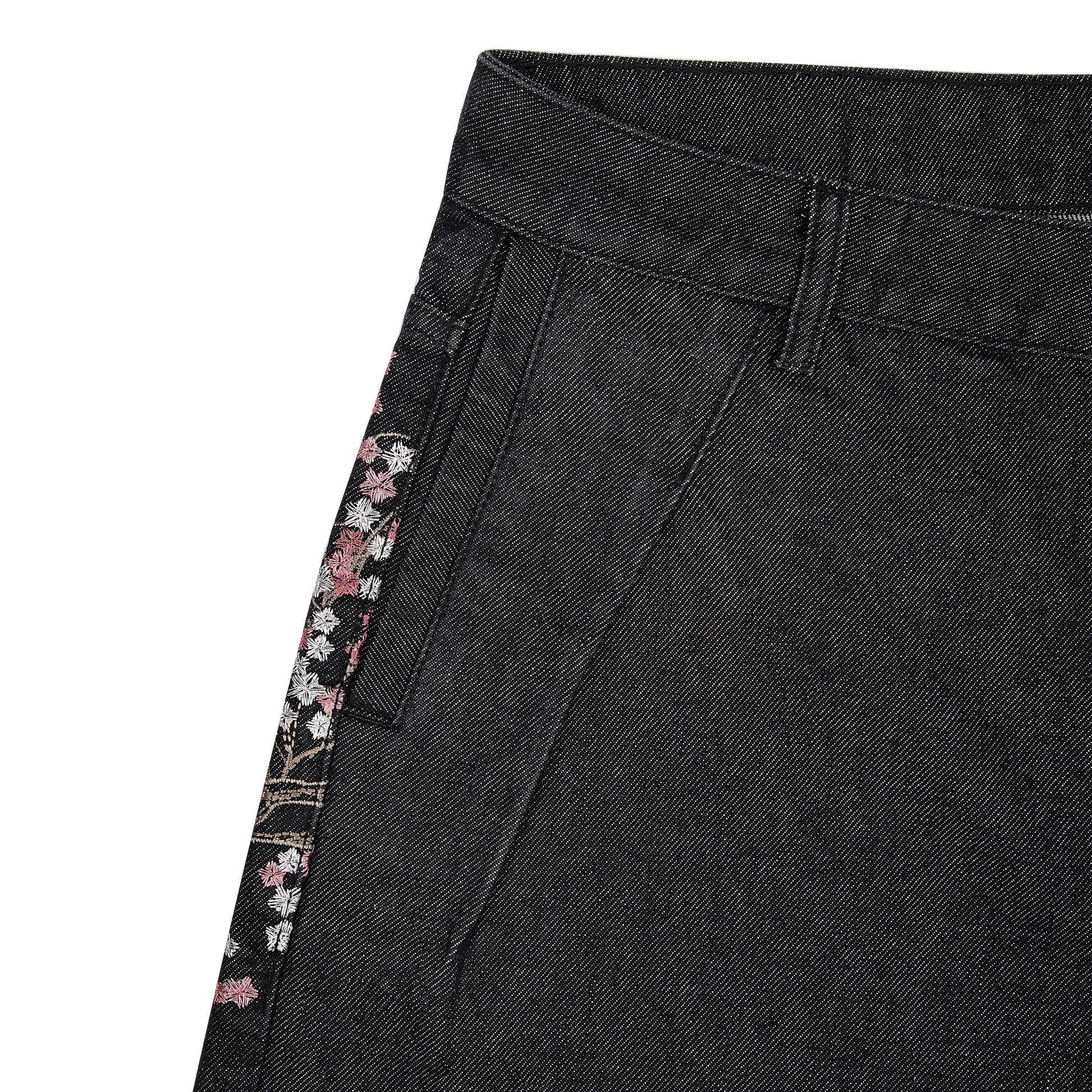 14,5oz raw denim / 100% cotton / embroidery on back / embroidered leather patch / pleats on front / custom buttons / wash inside out / fits true to size