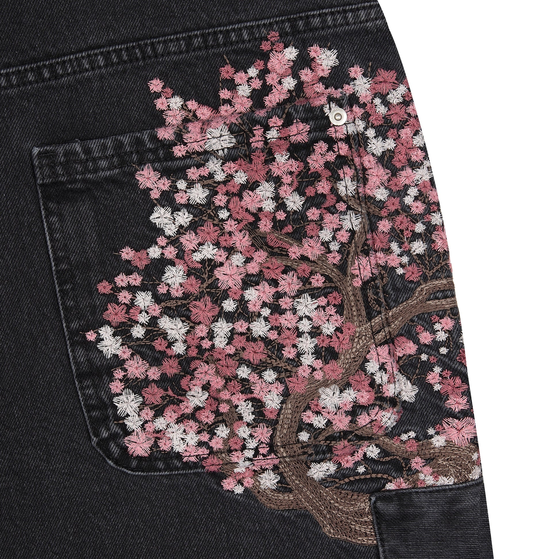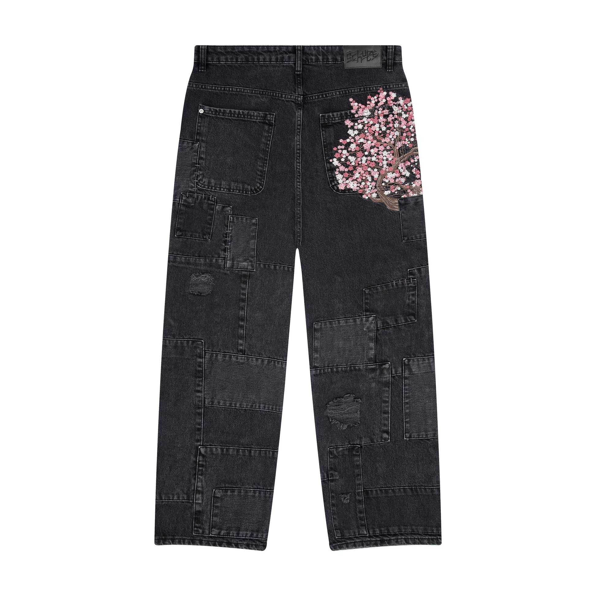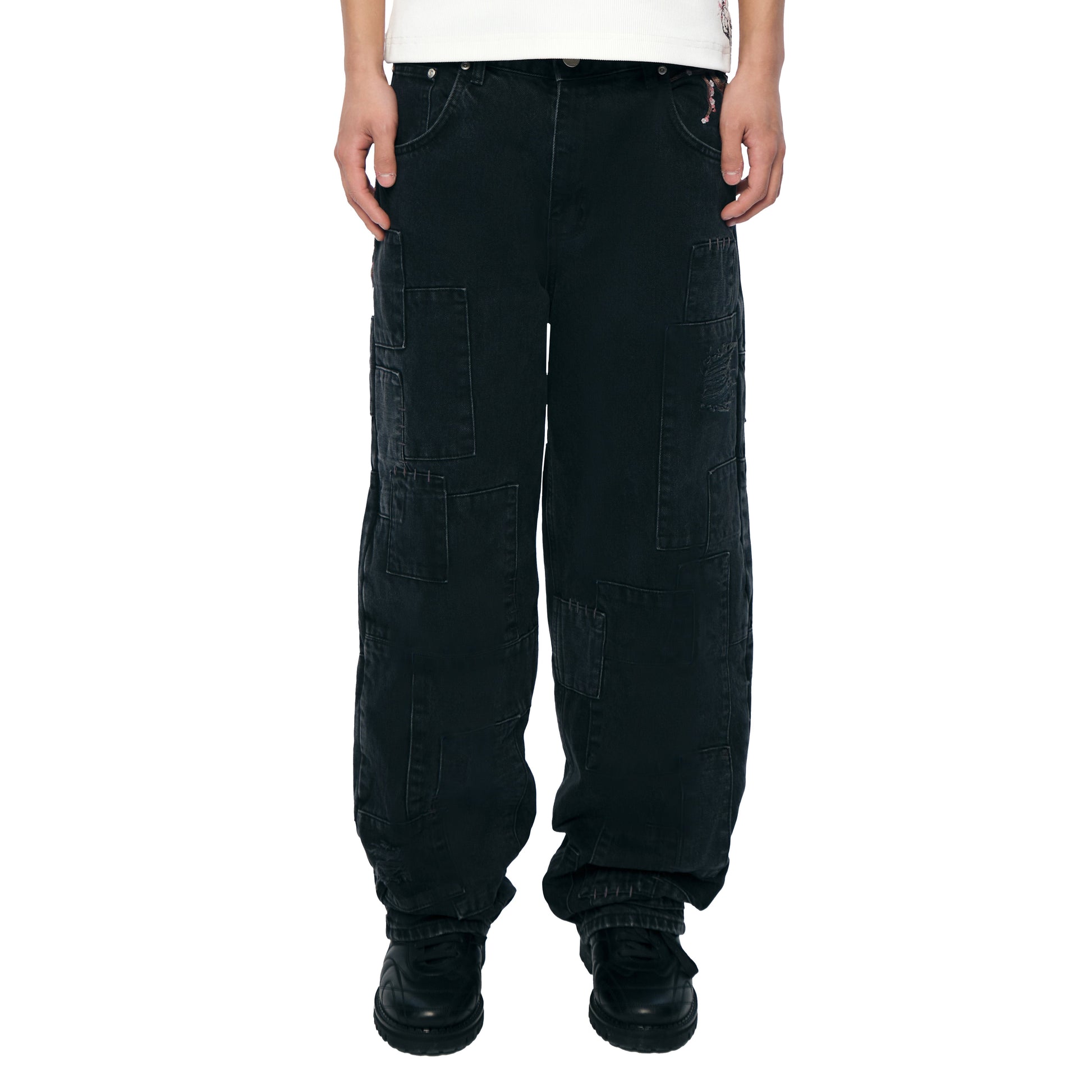 14,5oz denim / 100% cotton / 20+ hand sewn patches all over / embroidery on front pocket and back / embroidered leather patch / washed effect / distressed patches / wash inside out / fits true to size