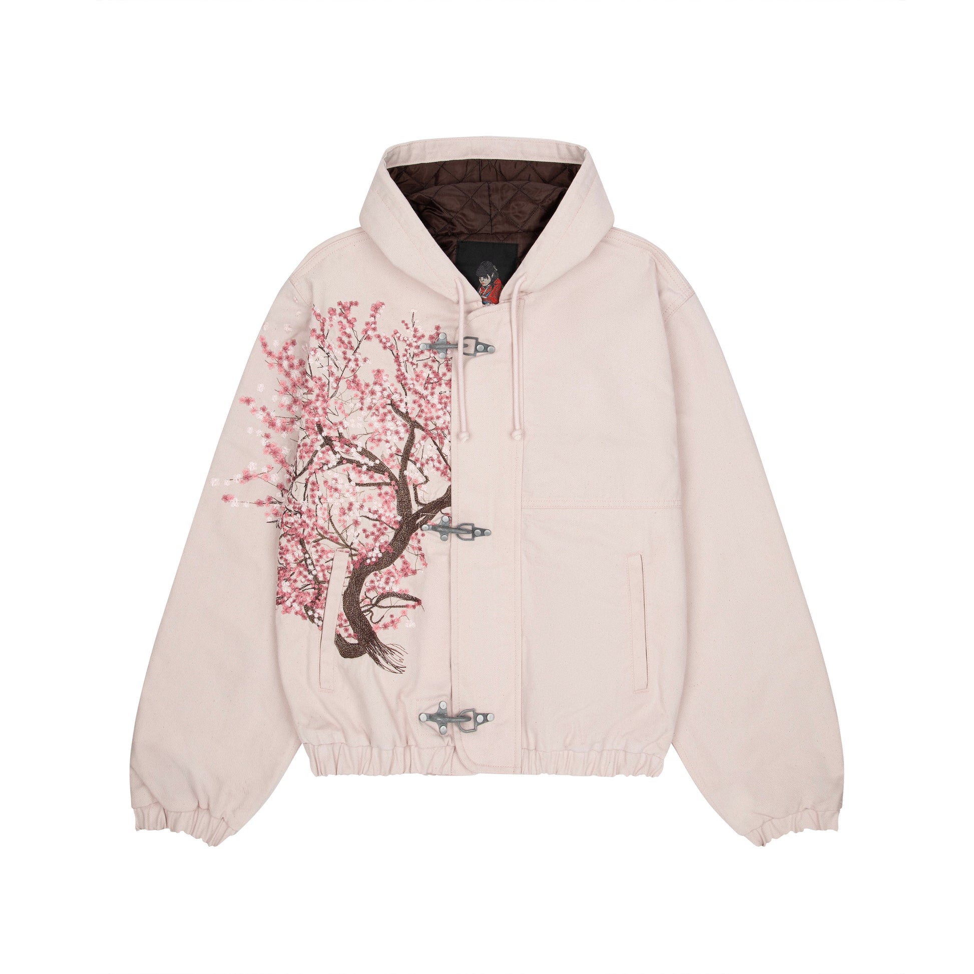14oz pink washed denim / 100% cotton / embroidery on front and sleeve / with YKK zipper and fireman claps / quilted pattern lining and pocket inside / fits true to size