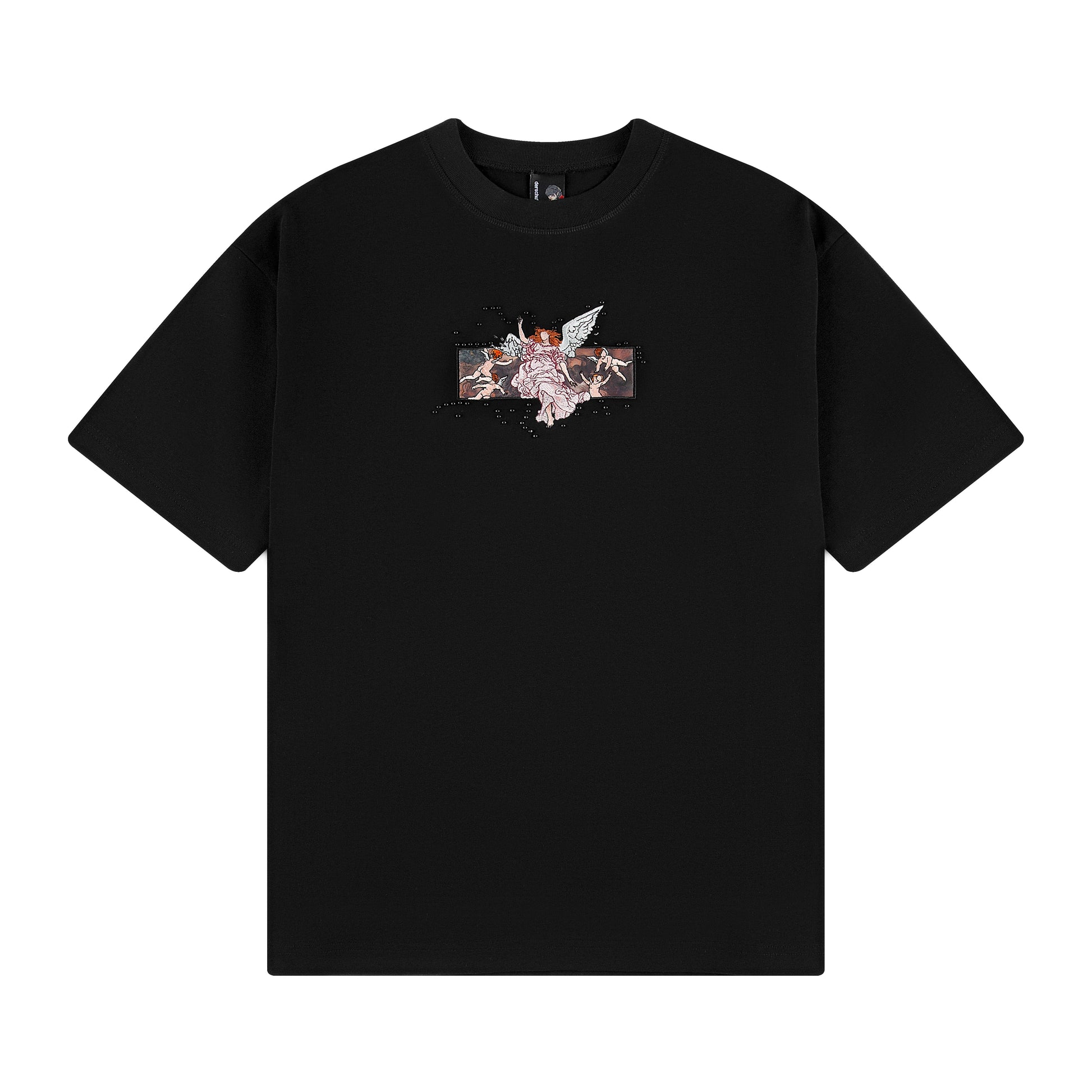 260gsm/ 100% preshrunk cotton/ mix of embroidery and screen print/ black pearl details/ fits true to size