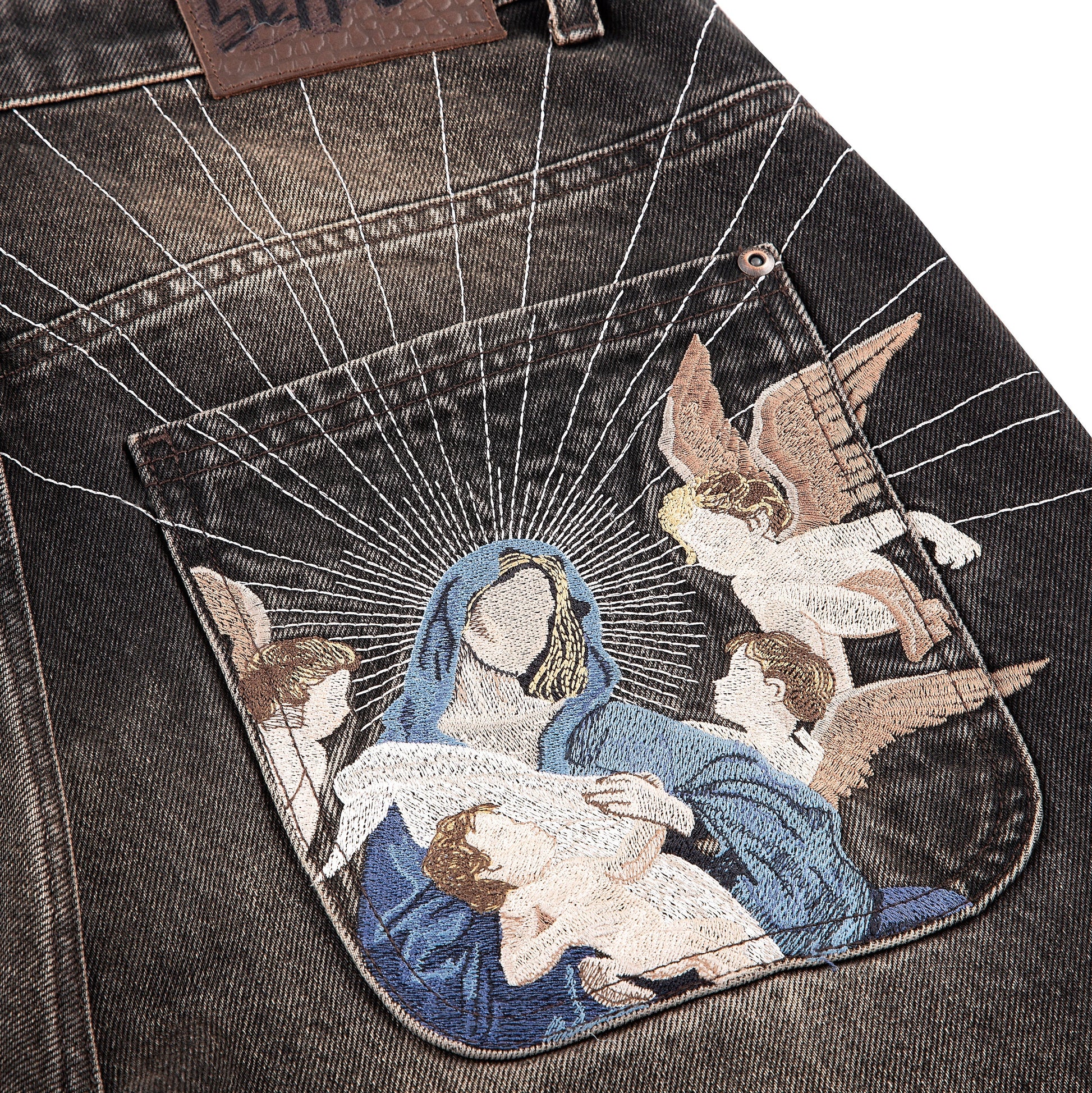 14,5oz denim/ 100% cotton/ embroidery on back/ brown tint/?baggy fit
