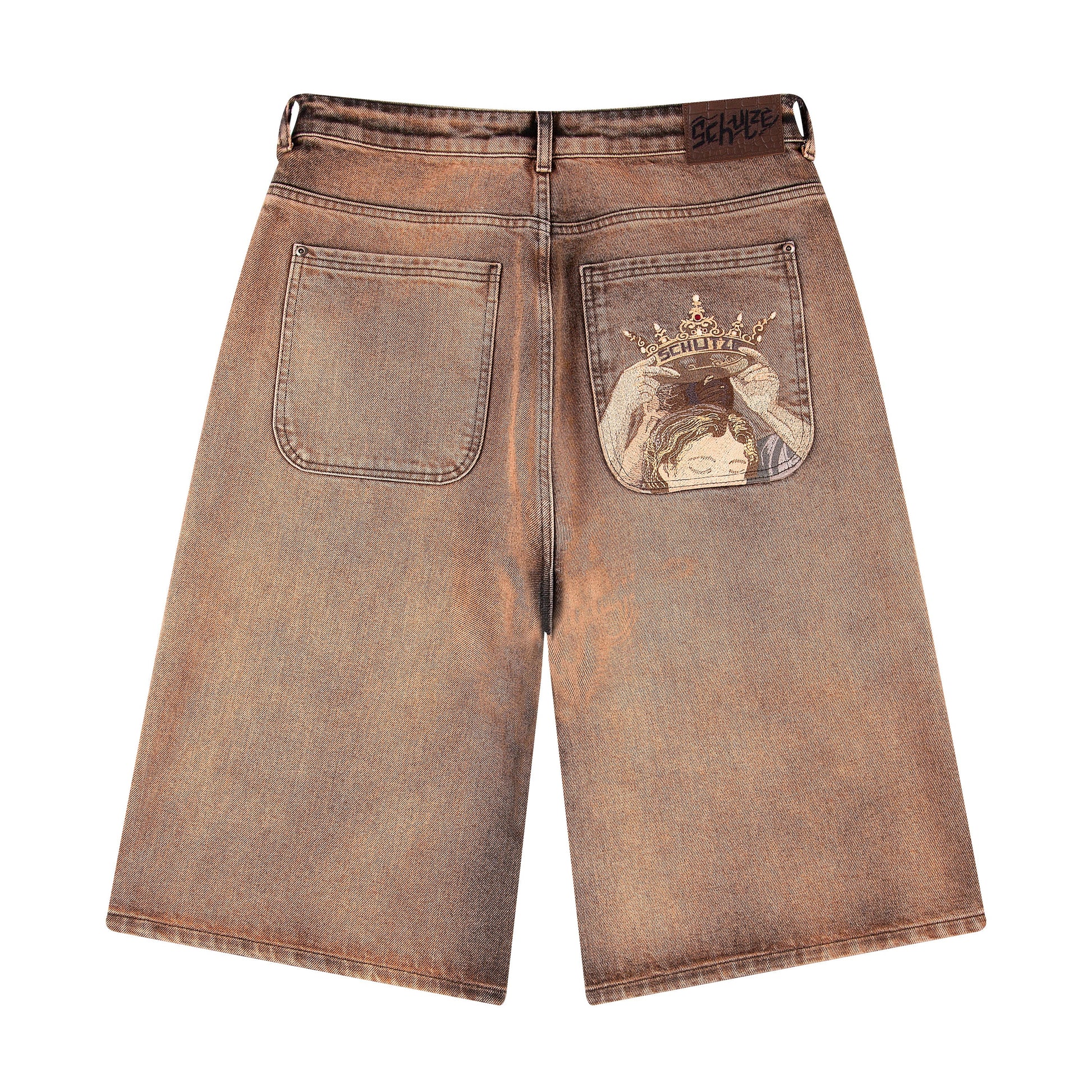 14,5oz denim/ 100% cotton/ embroidery on front and back pocket/ bronze tint/?baggy fit
