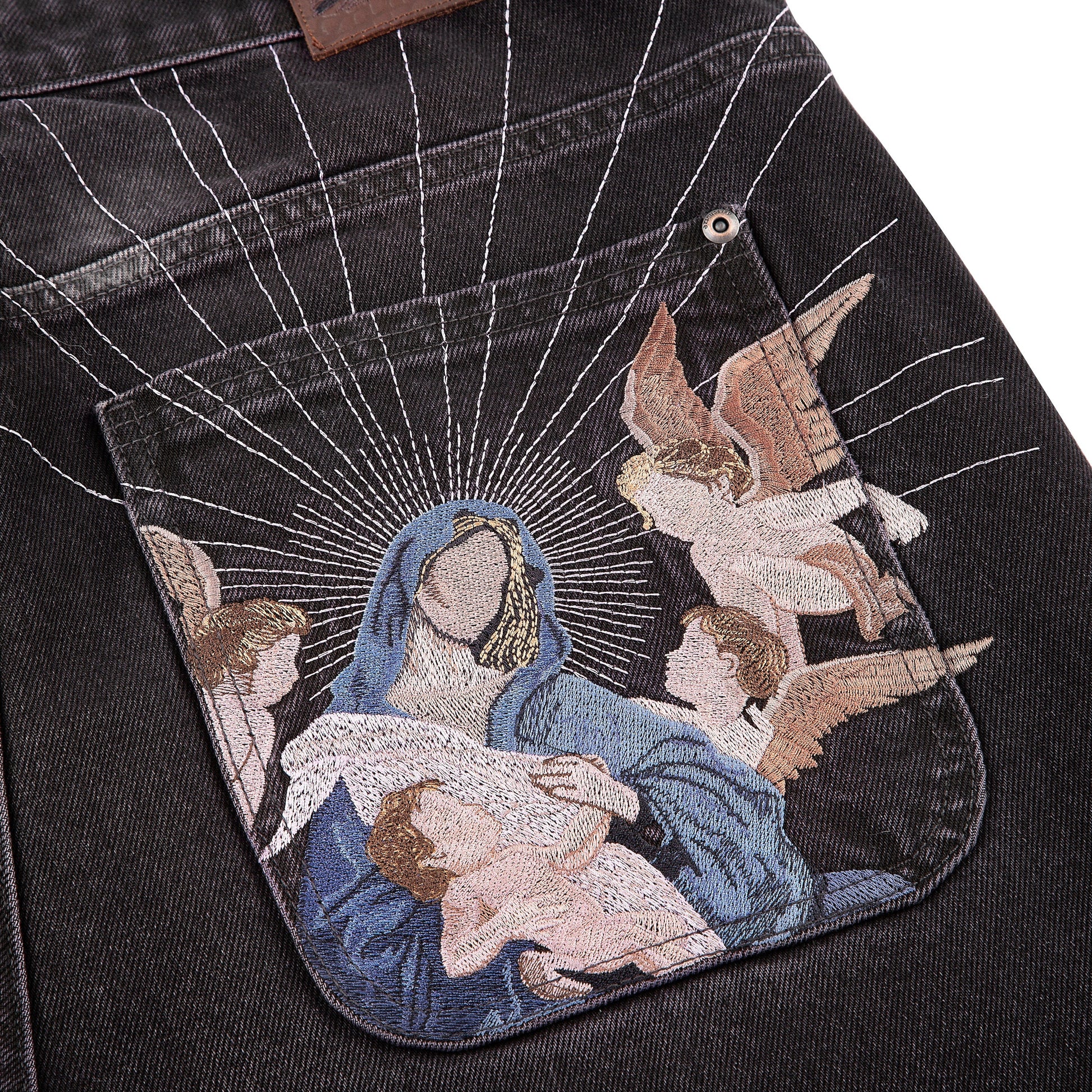 14,5oz denim/ 100% cotton/ embroidery on back/ purple tint/?baggy fit