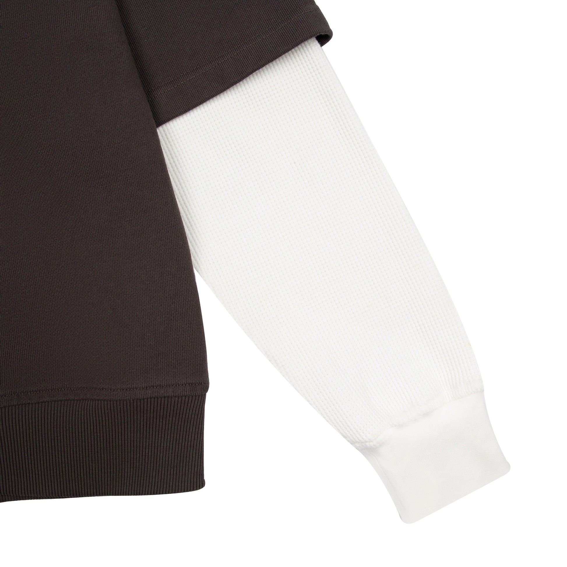 480gsm / 100% preshrunk cotton / waffle sleeves (280 gsm 97% cotton 3% EA) / embroidery on front / custom buttons / fits true to size