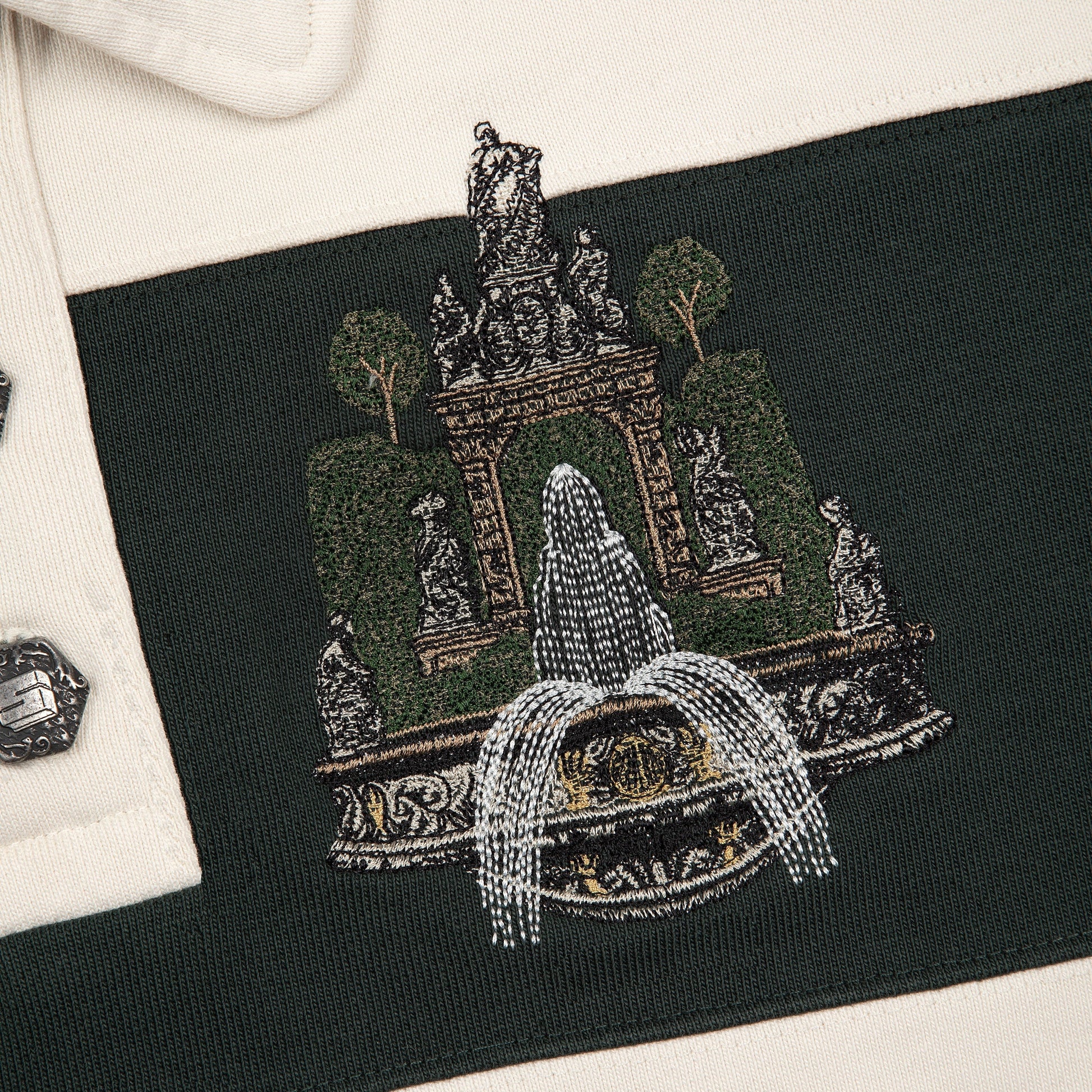 480gsm / 100% preshrunk cotton / embroidery on front and back / custom buttons / fits true to size