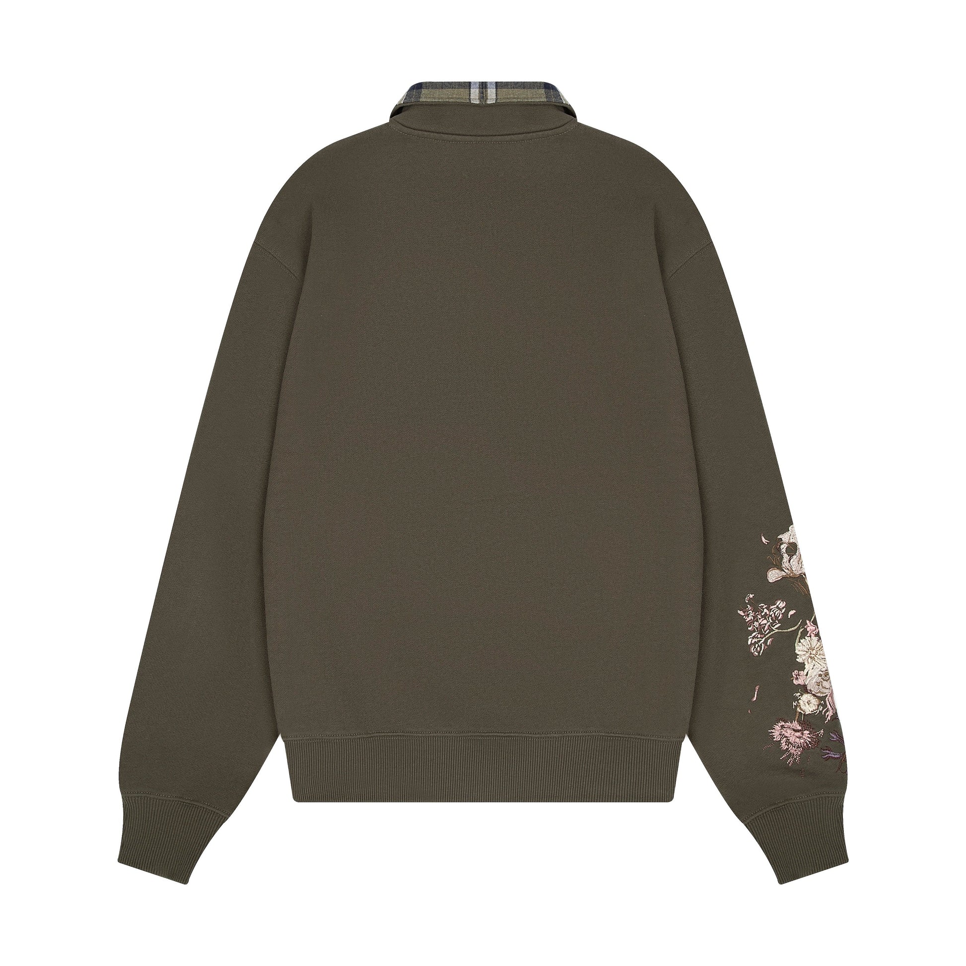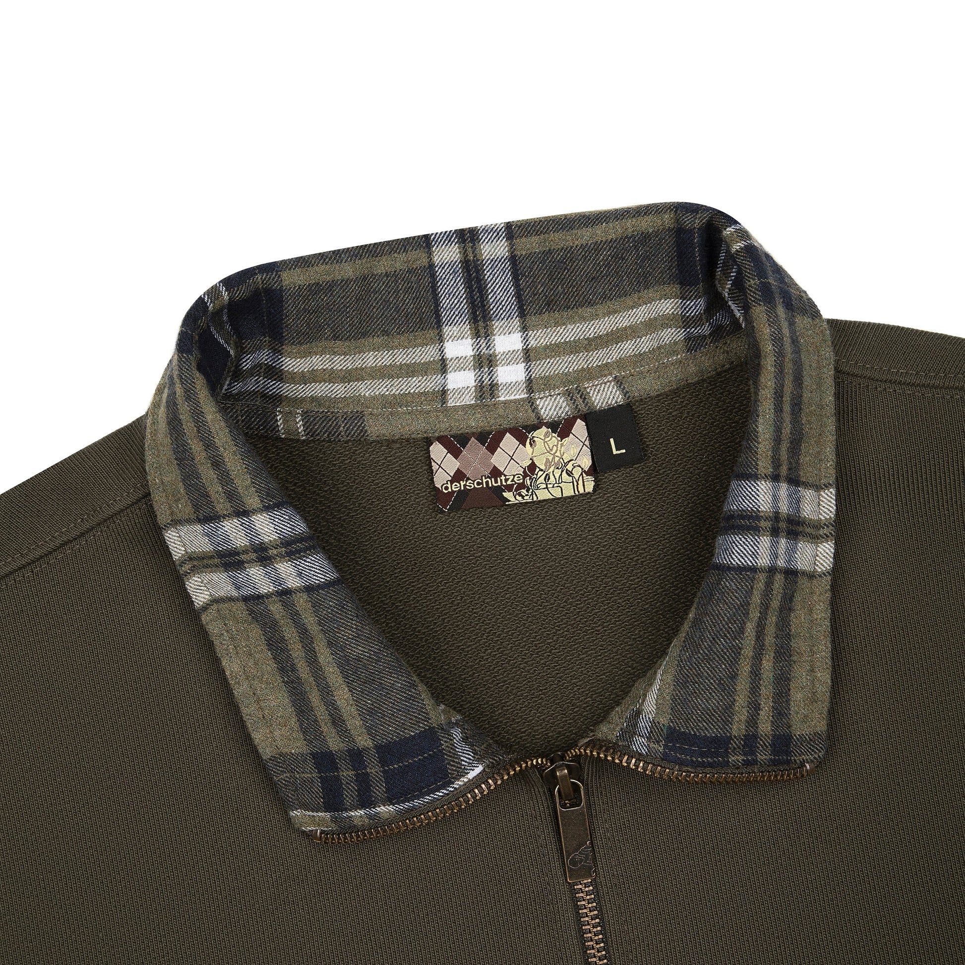 480gsm / 100% preshrunk cotton / collar lining from plaid patterned fabric / embroidery with appliqué made from plaid patterned fabric on front / embroidery on sleeve / with YKK zipper on collar / fits true to size