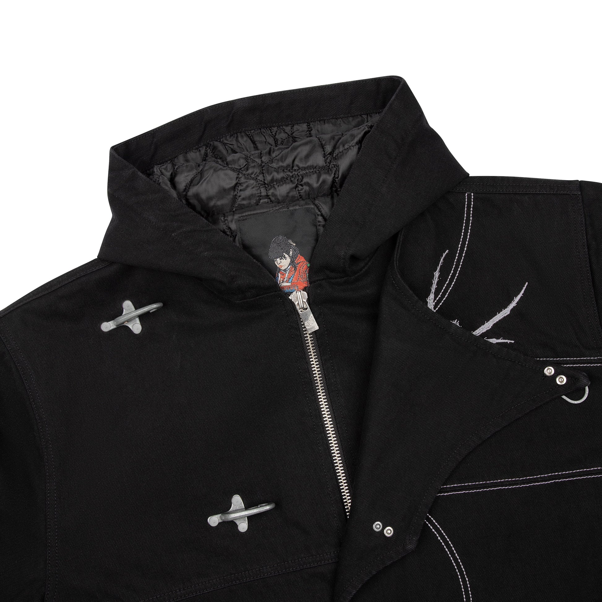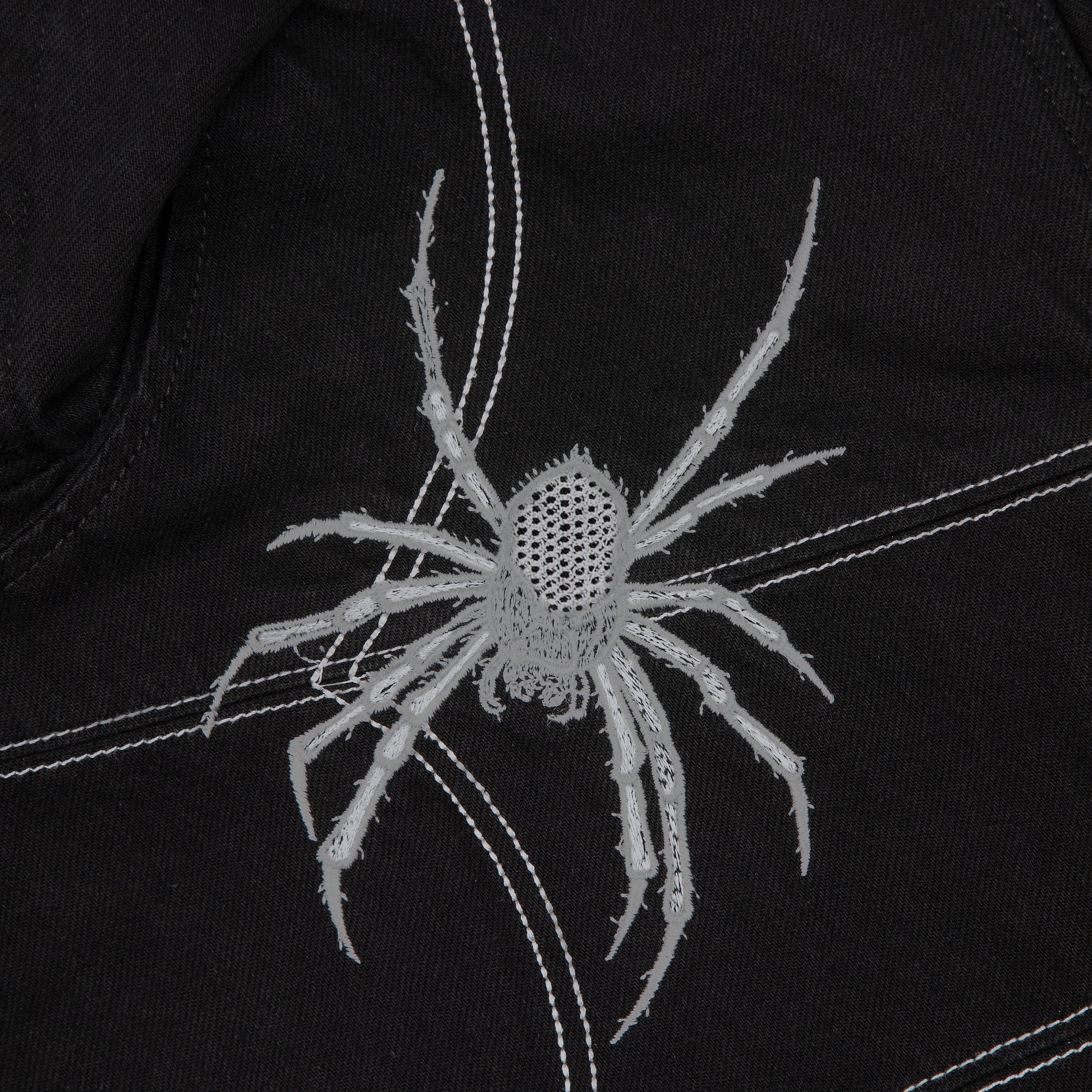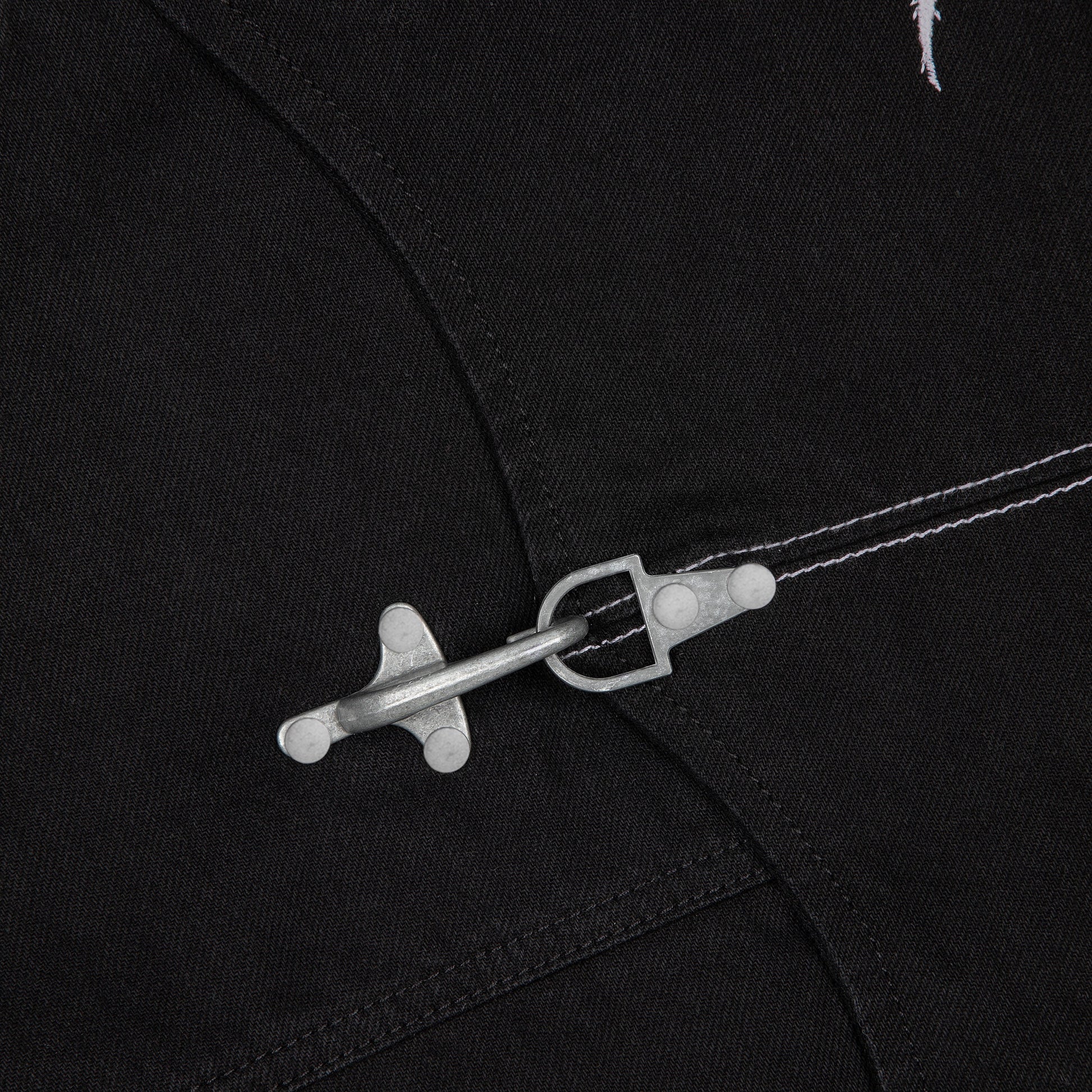 14oz denim / 100% cotton / embroidery on front / with YKK zipper and fireman claps / spiderweb embroidered lining / pocket inside / fits true to size