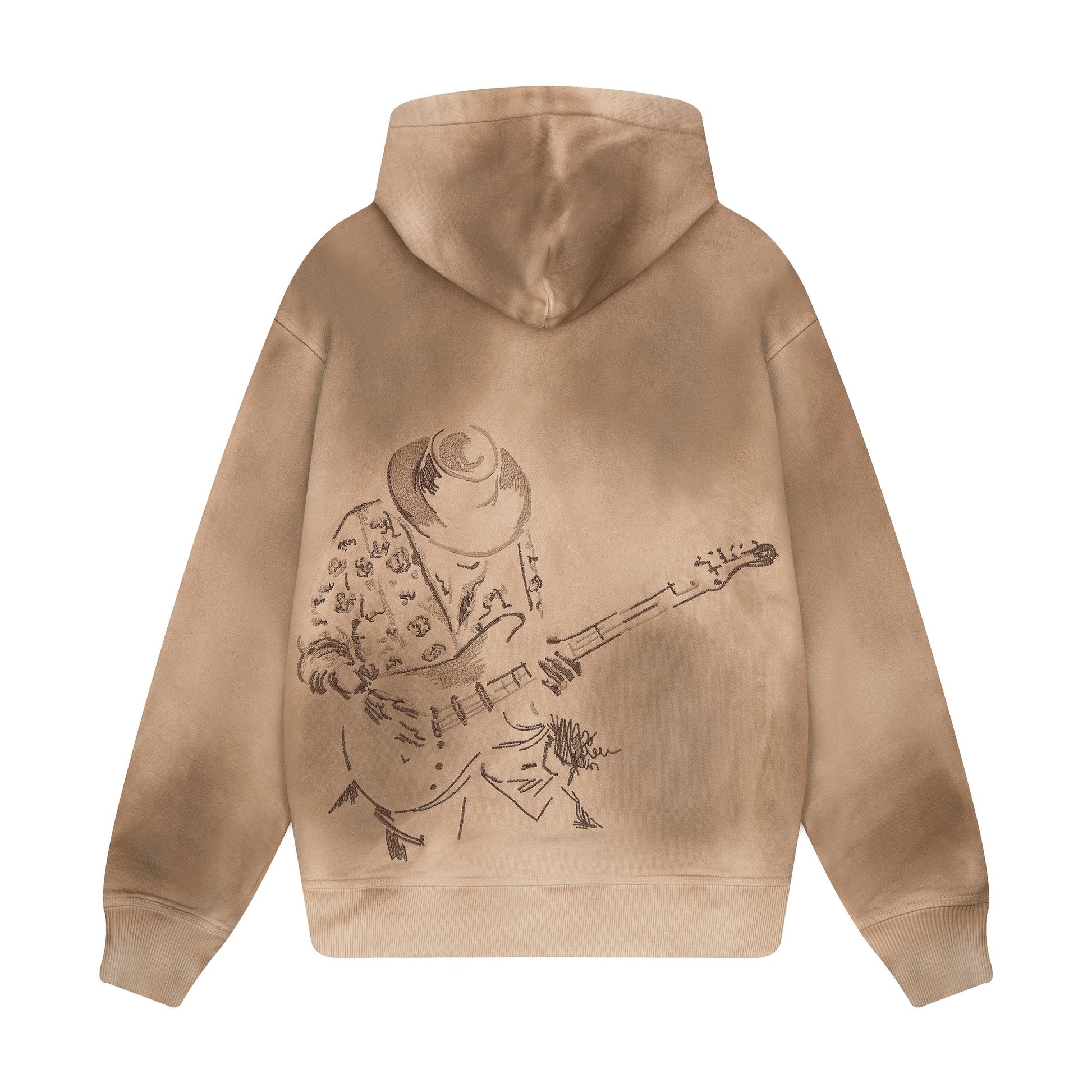 480gsm / 100% preshrunk cotton / embroidery on back / spray effect / slight distress / fits true to size