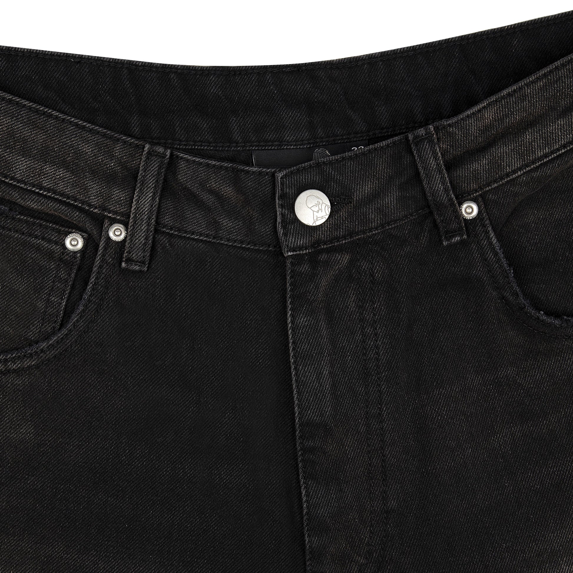 14,5oz denim / 100% cotton / embroidery on front and back pocket / embroidered leather patch / washed effect / slightly distressed on pockets openings and hem / wash inside out / fits true to?size