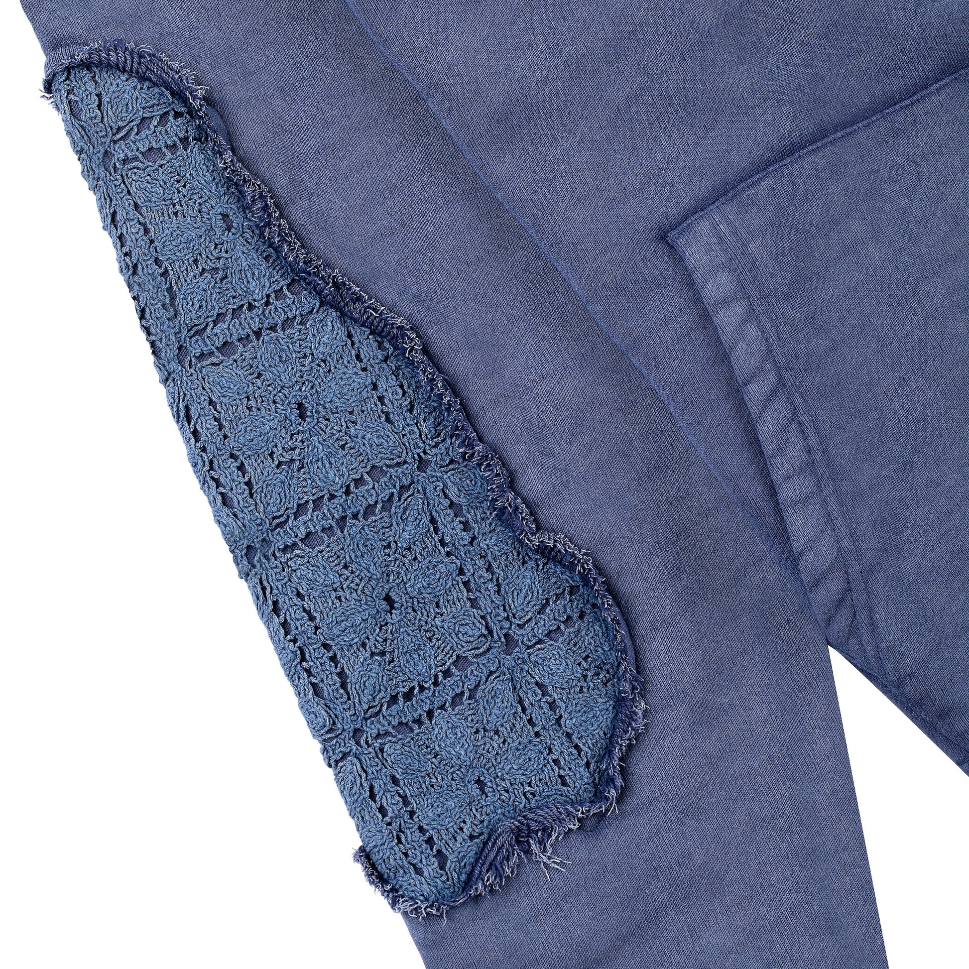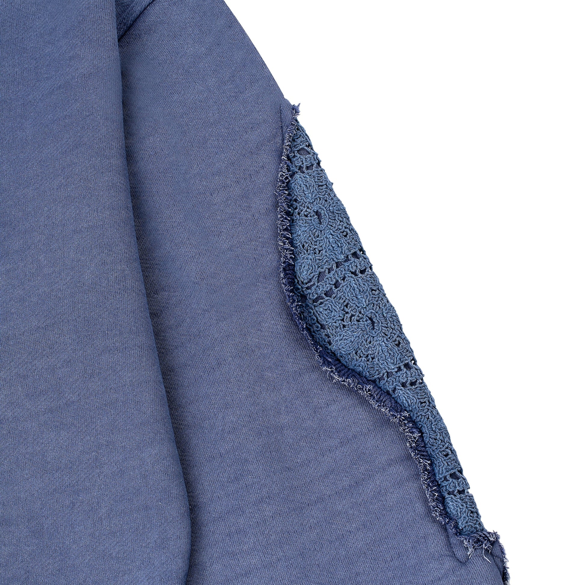 480gsm French terry / 200 000+ stitches embroidery on back / 100% preshrunk cotton / washed effect / embedded crochet detailing / embroidery on back / fits true to size