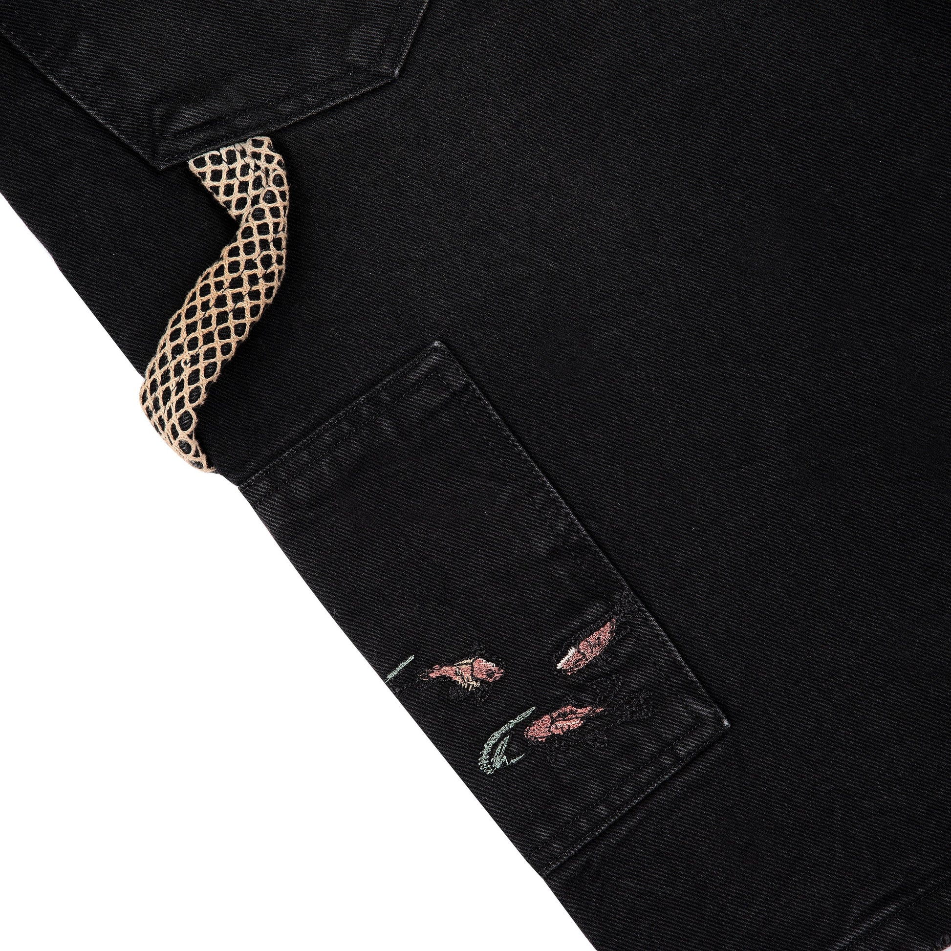 14.5oz denim / 100% cotton / embroidery on both side pockets / fish net detailing / baggy fit
