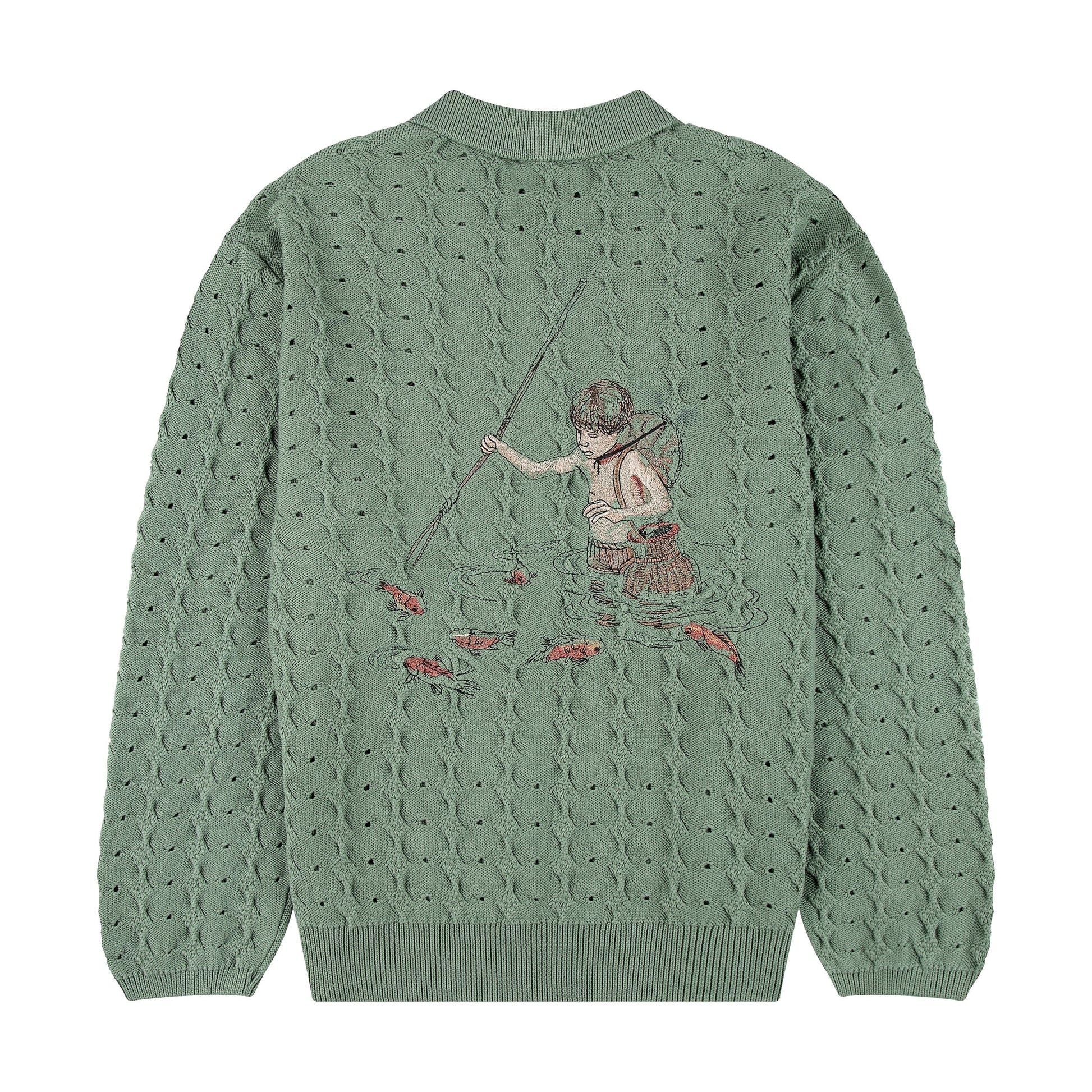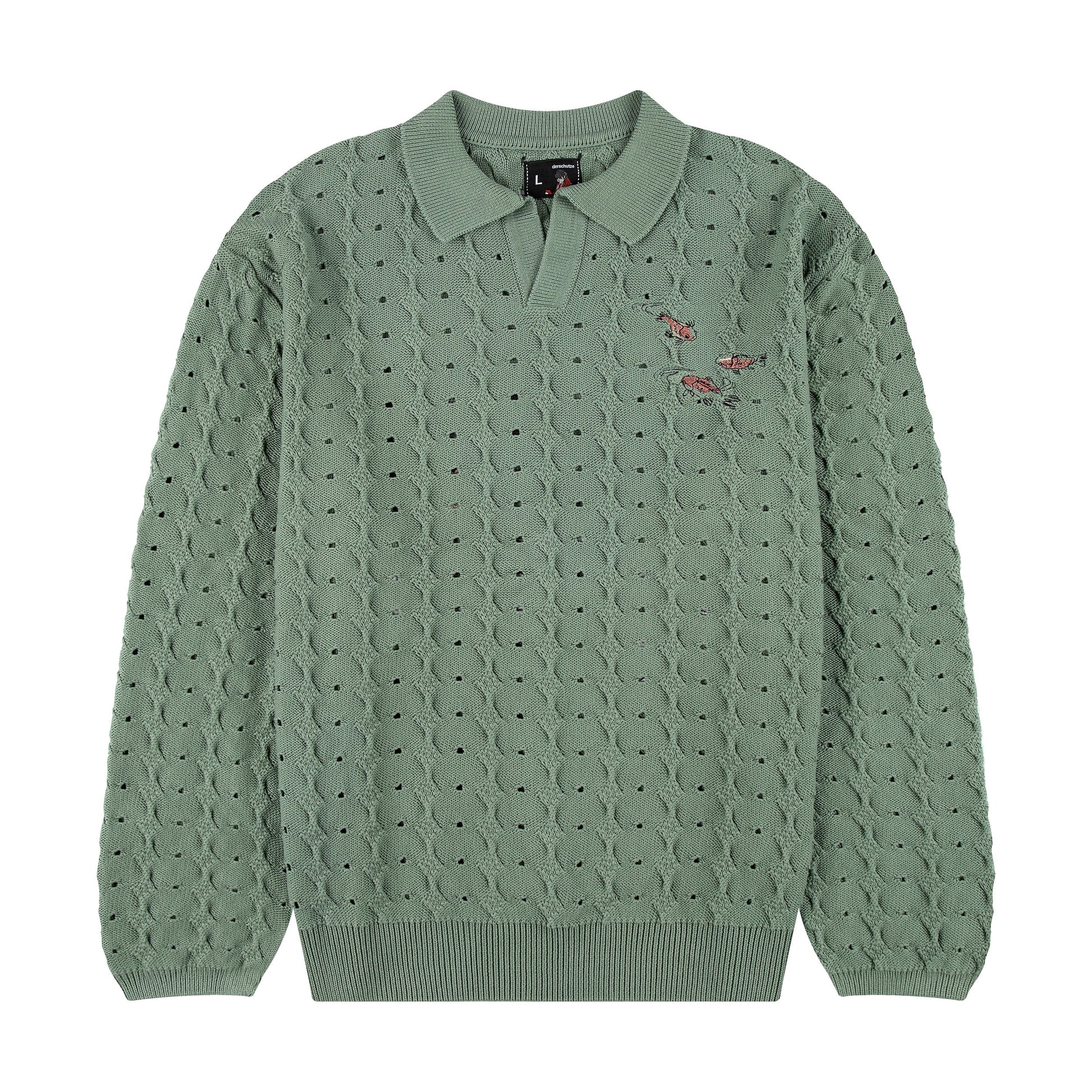 Custom fishnet-like knitting with actual holes for breathability / 100% cotton / embroidery on front and back / fits true to size”