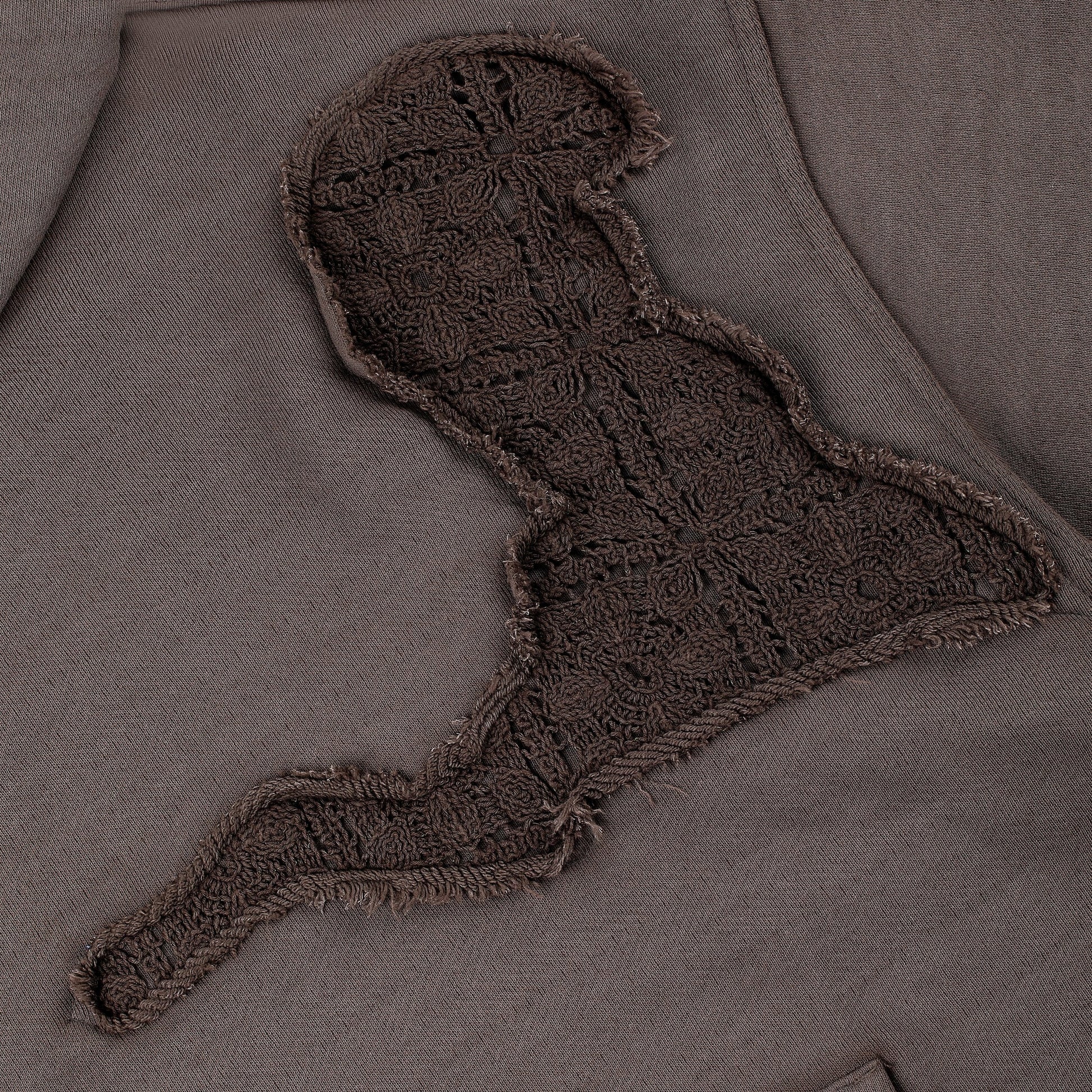 480gsm French terry / 100% preshrunk cotton / washed effect / embedded crochet detailing / embroidery on back / fits true to size