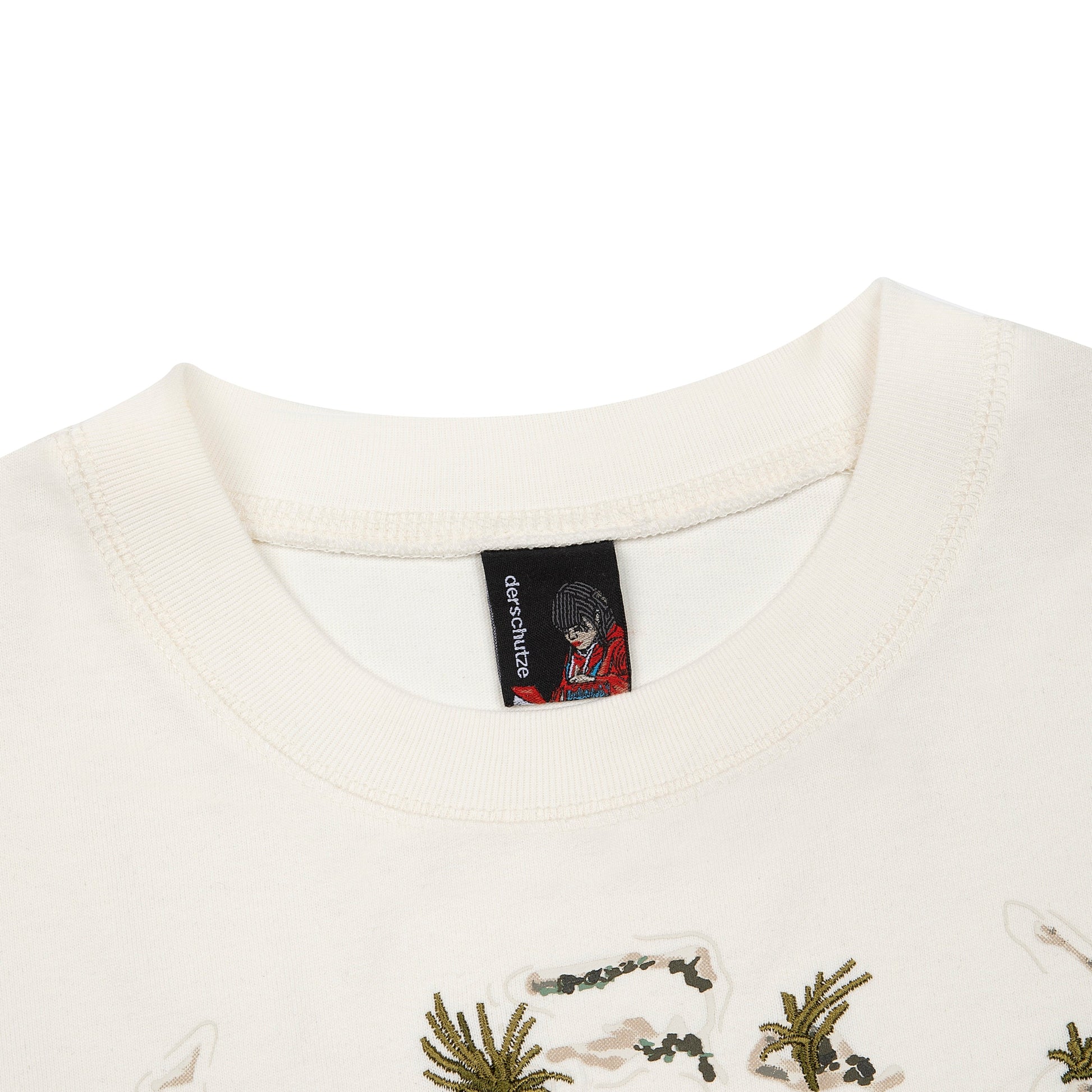 280gsm fabric / 100% preshrunk cotton / mix of print and embroidery on front / flock print on sides / fits true to size