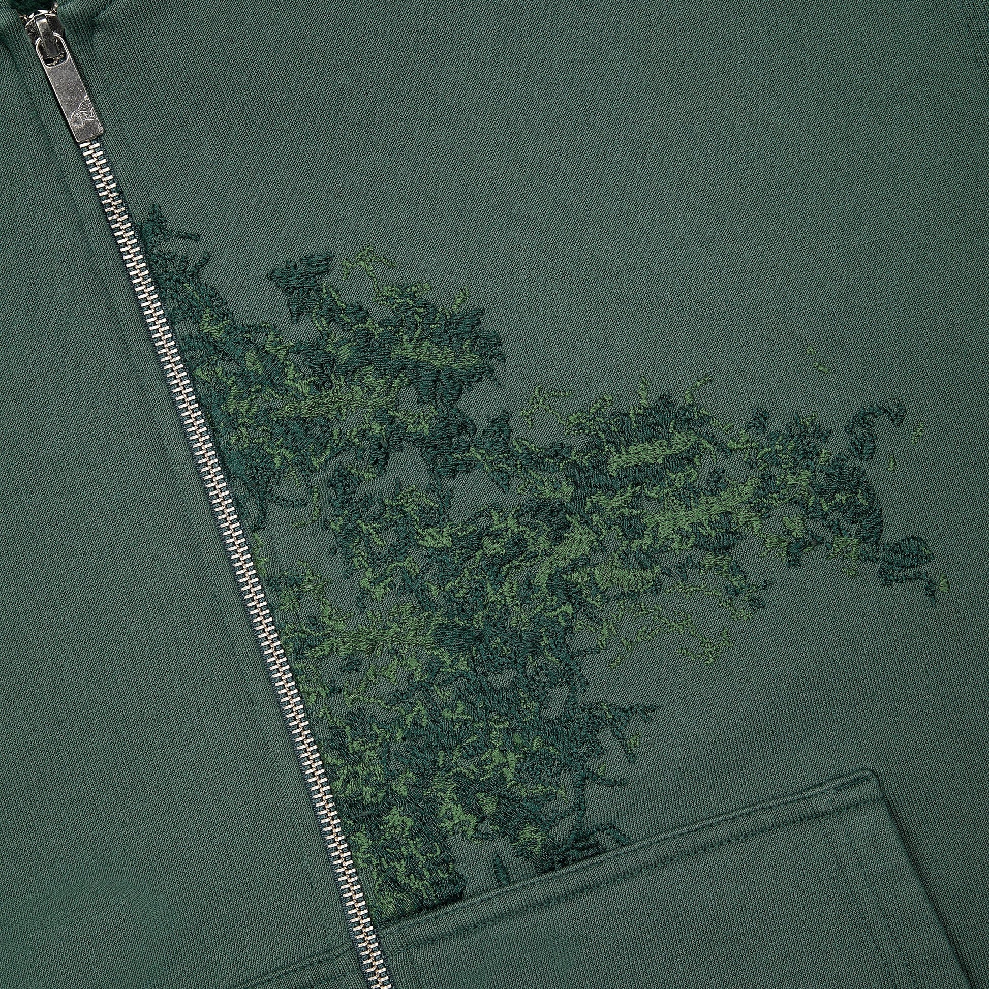 480gsm brushed cotton / 100% preshrunk cotton / 3D embroidery on the front / mix of print and 3D embroidery on the back / YKK double-slider zippers?/ slightly distressed on hood opening and ribs / fits true to size?