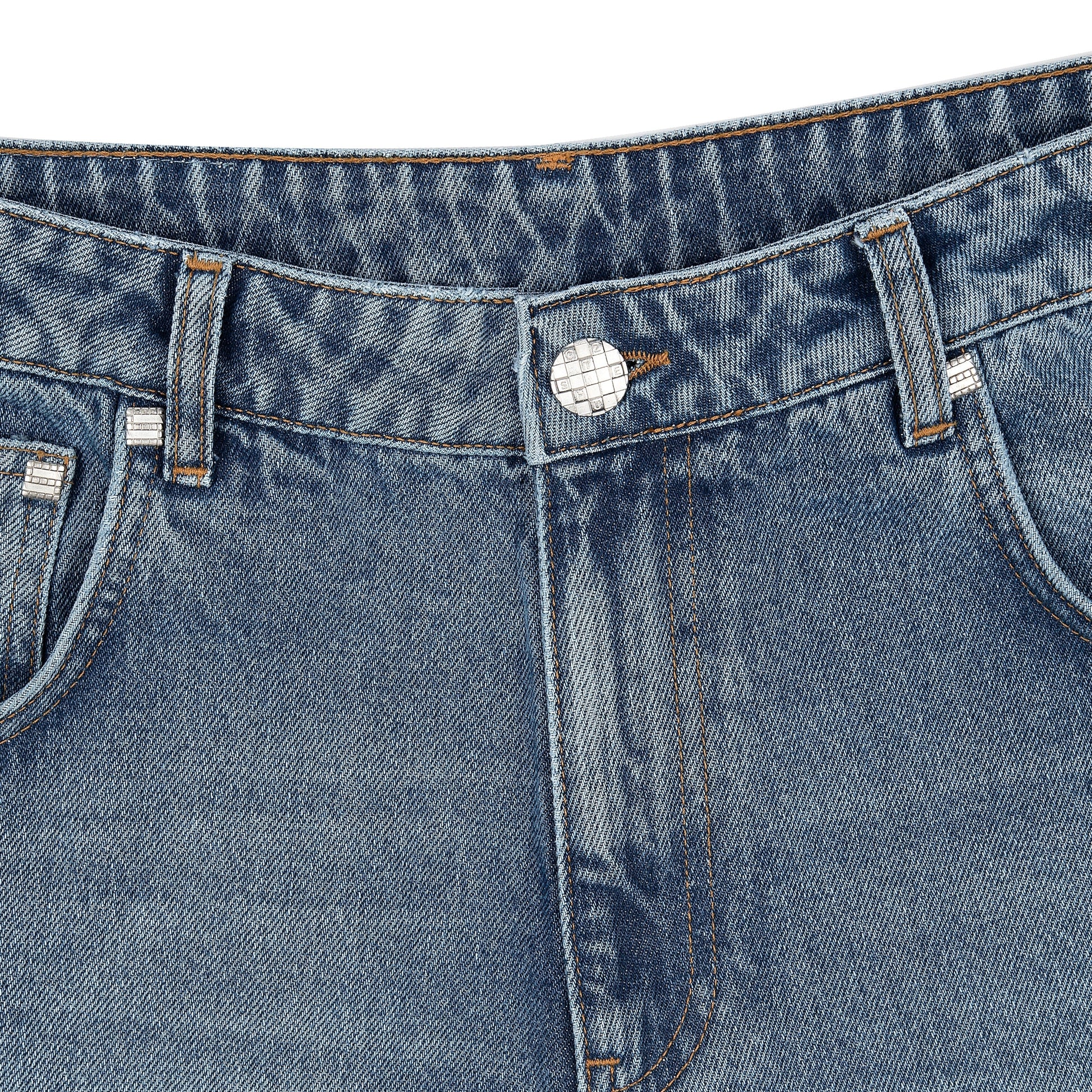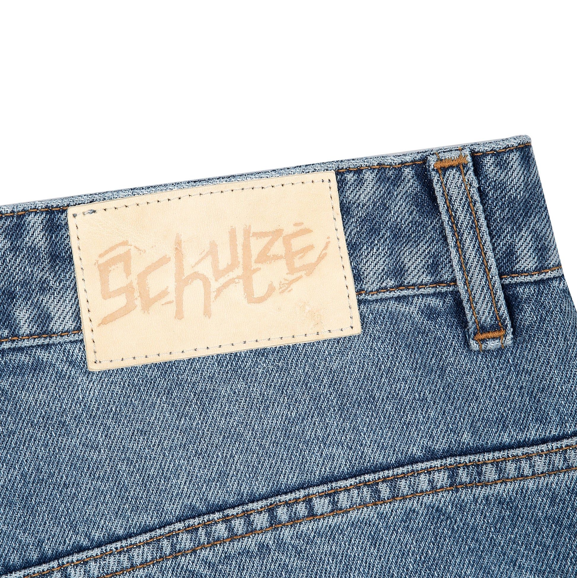14,5oz denim / 100% cotton / embroidery on back / vegan woven leather details on embroidery / deboss printed?leather patch / effect washing / custom button / fits true to?size / allow up 2 weeks for this item to be shipped