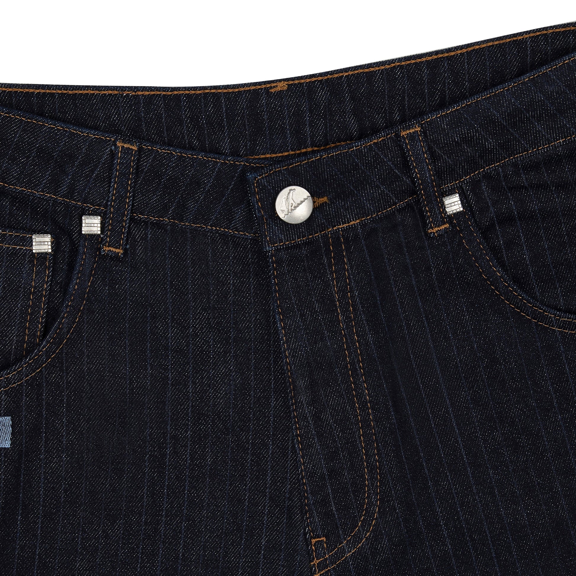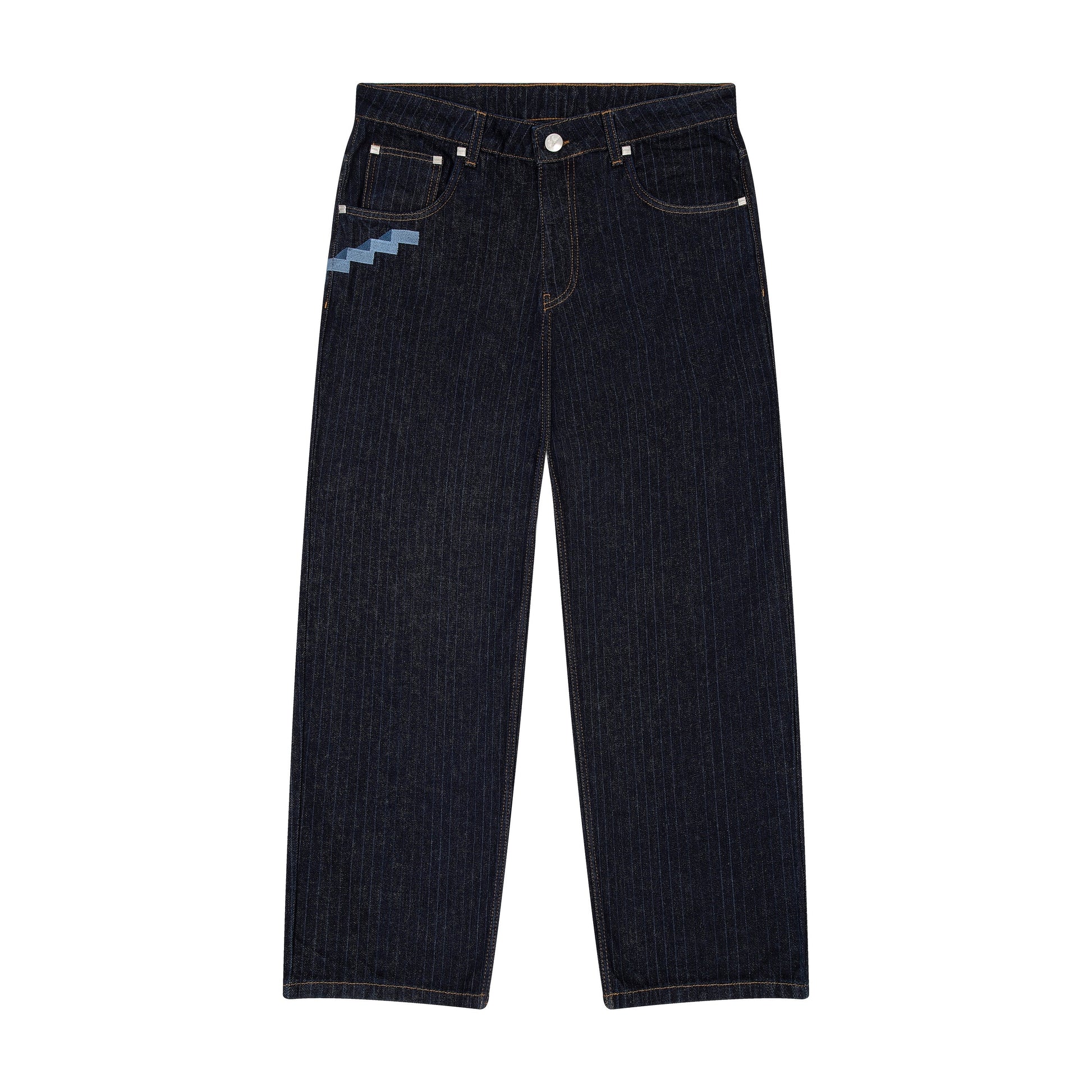 14,5oz raw denim / 100% cotton / laser printed stripes on front and back / embroidery on front and back / deboss printed leather patch / custom buttons / fabric may bleed or fade, wash inside out in cold water to preserve color and character / fits true to?size