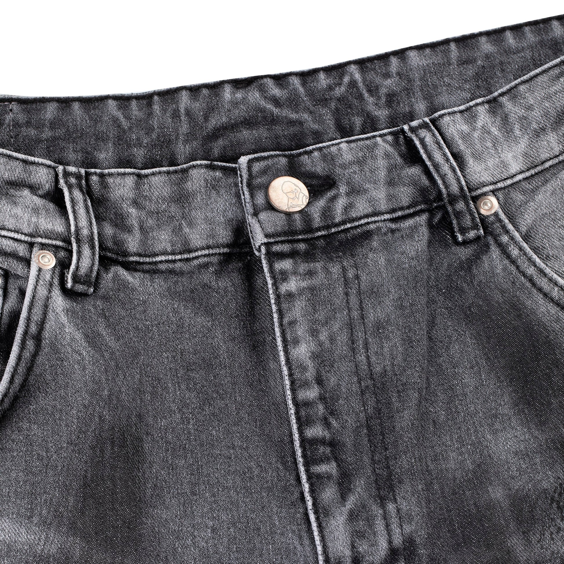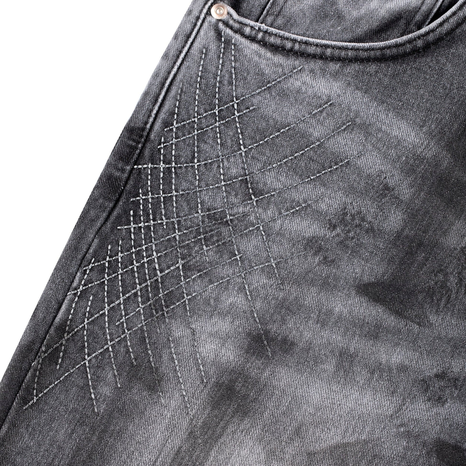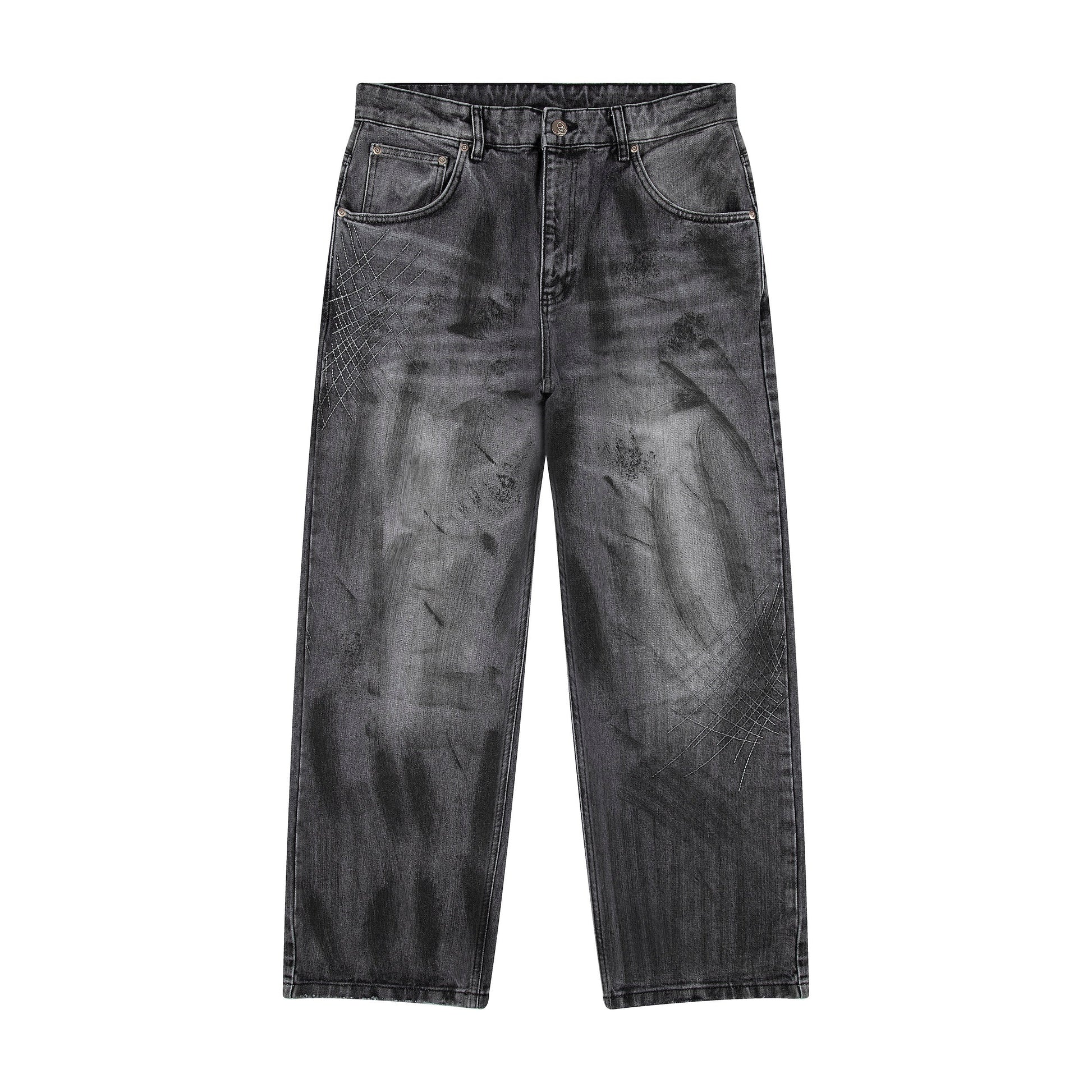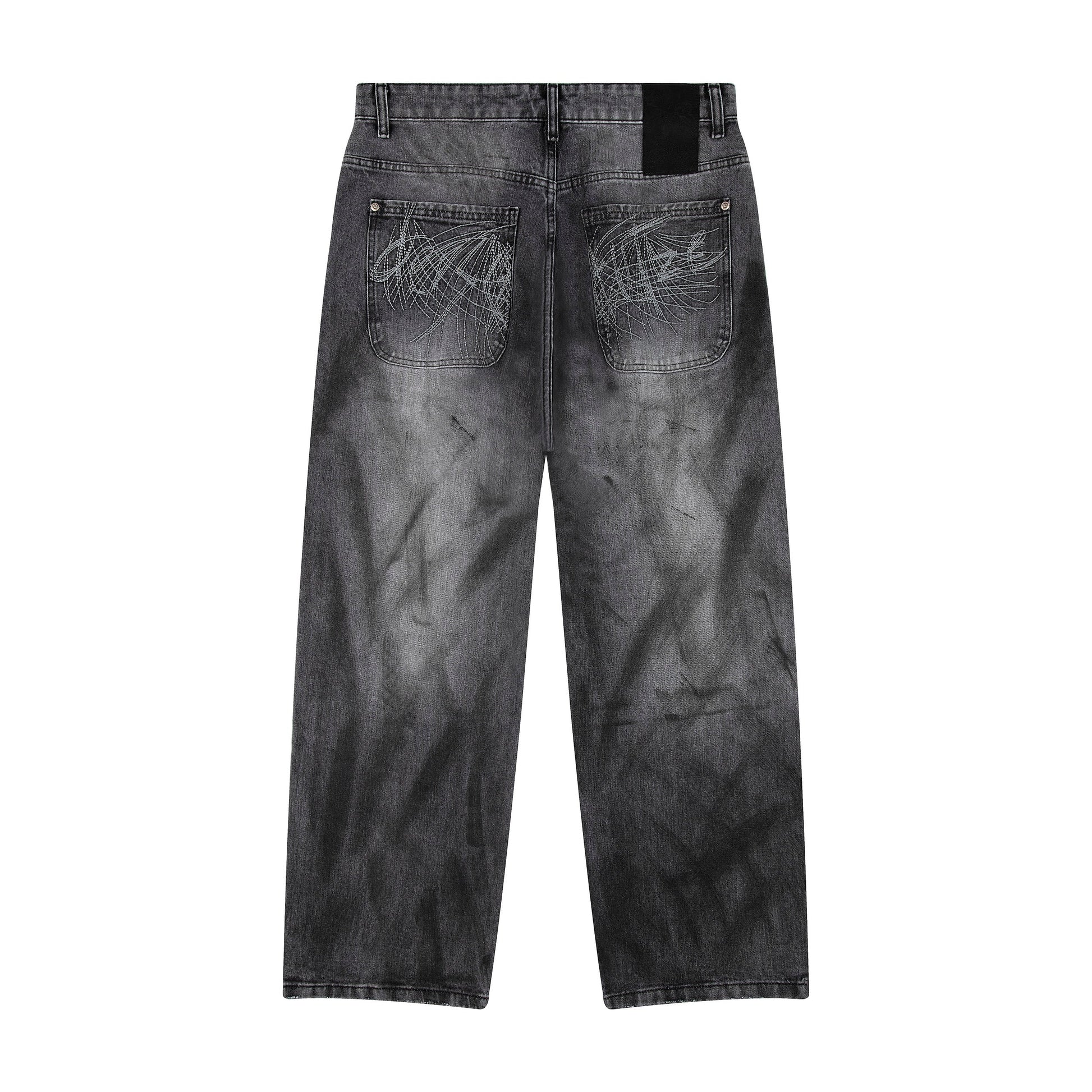 14,5oz denim/ 100% cotton/ embroidery on front and back/ black paint look all over/ baggy fit