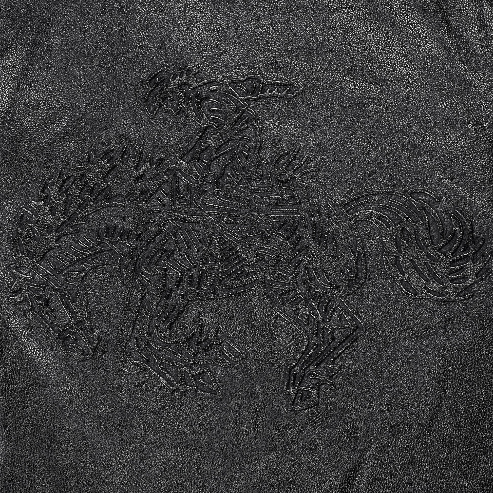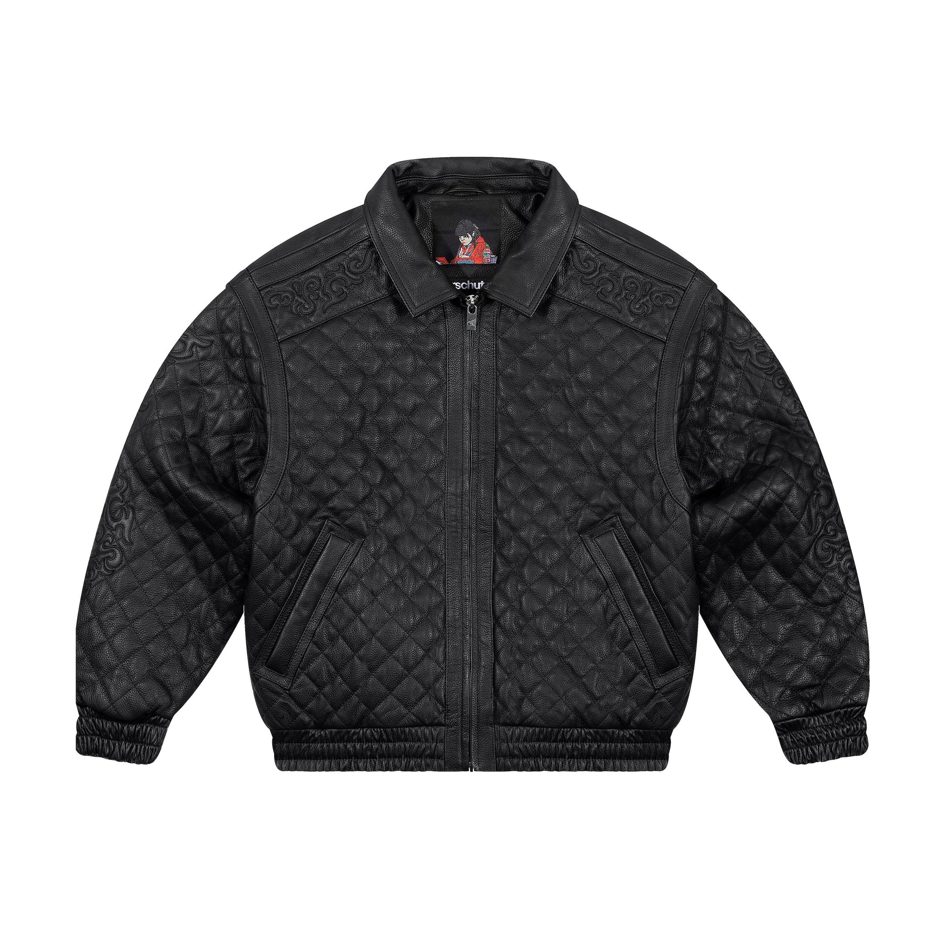 heavy real cow leather / 100% Polyester?Inner linning / YKK zipper / embossed back design / quilted sleeves?