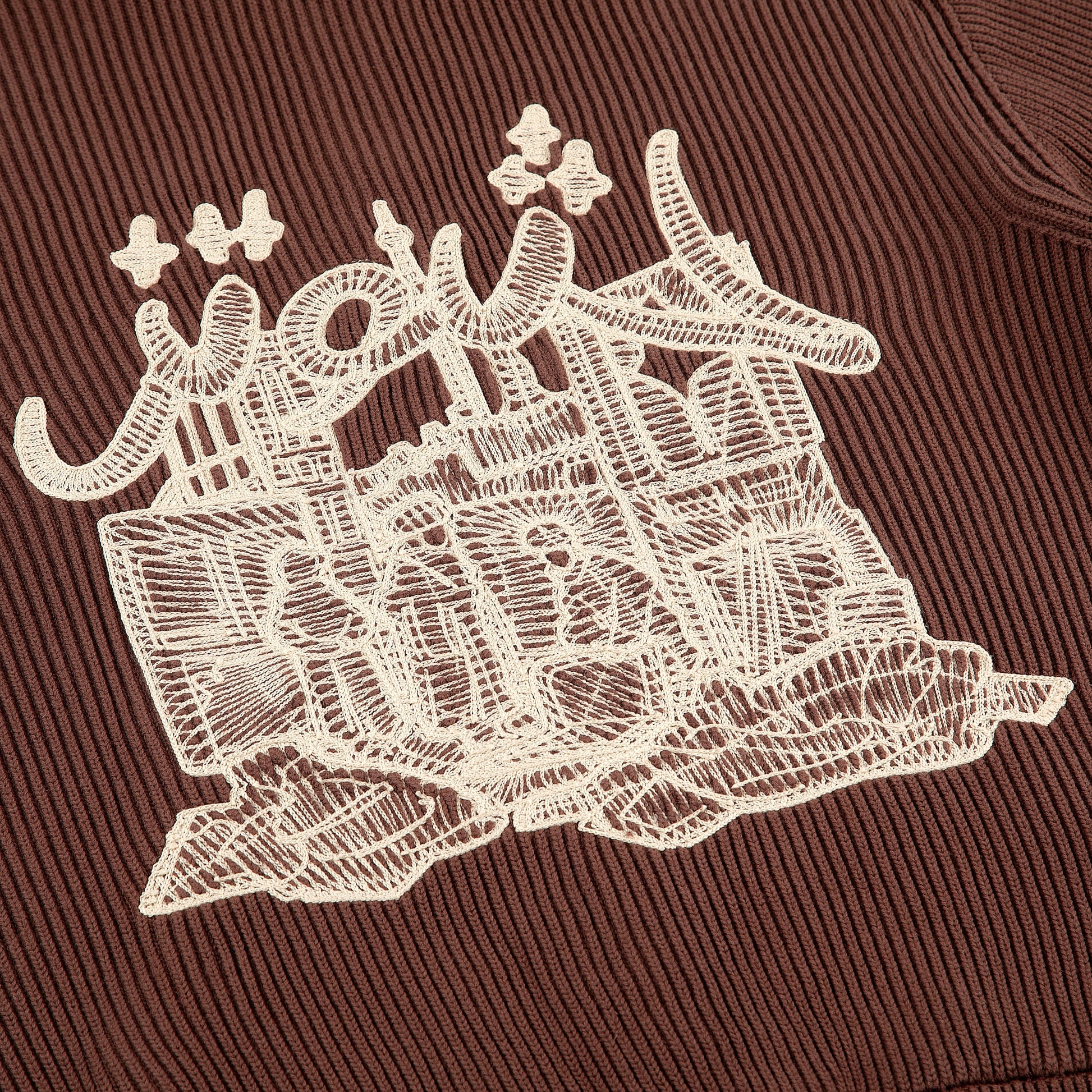 ?100% cotton/ heavy knit/ YKK zipper/ chenille embroidered front and back design/ true to size