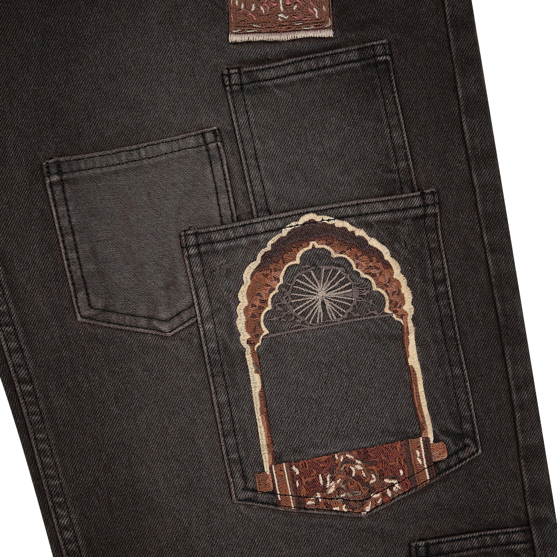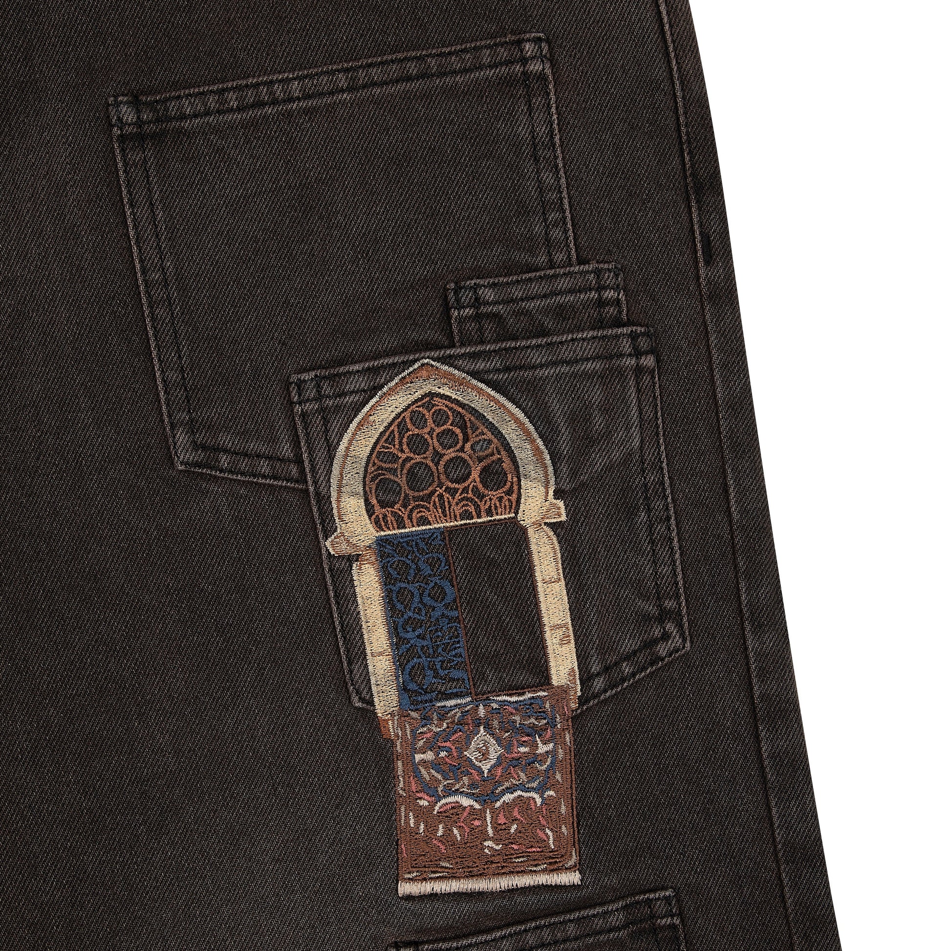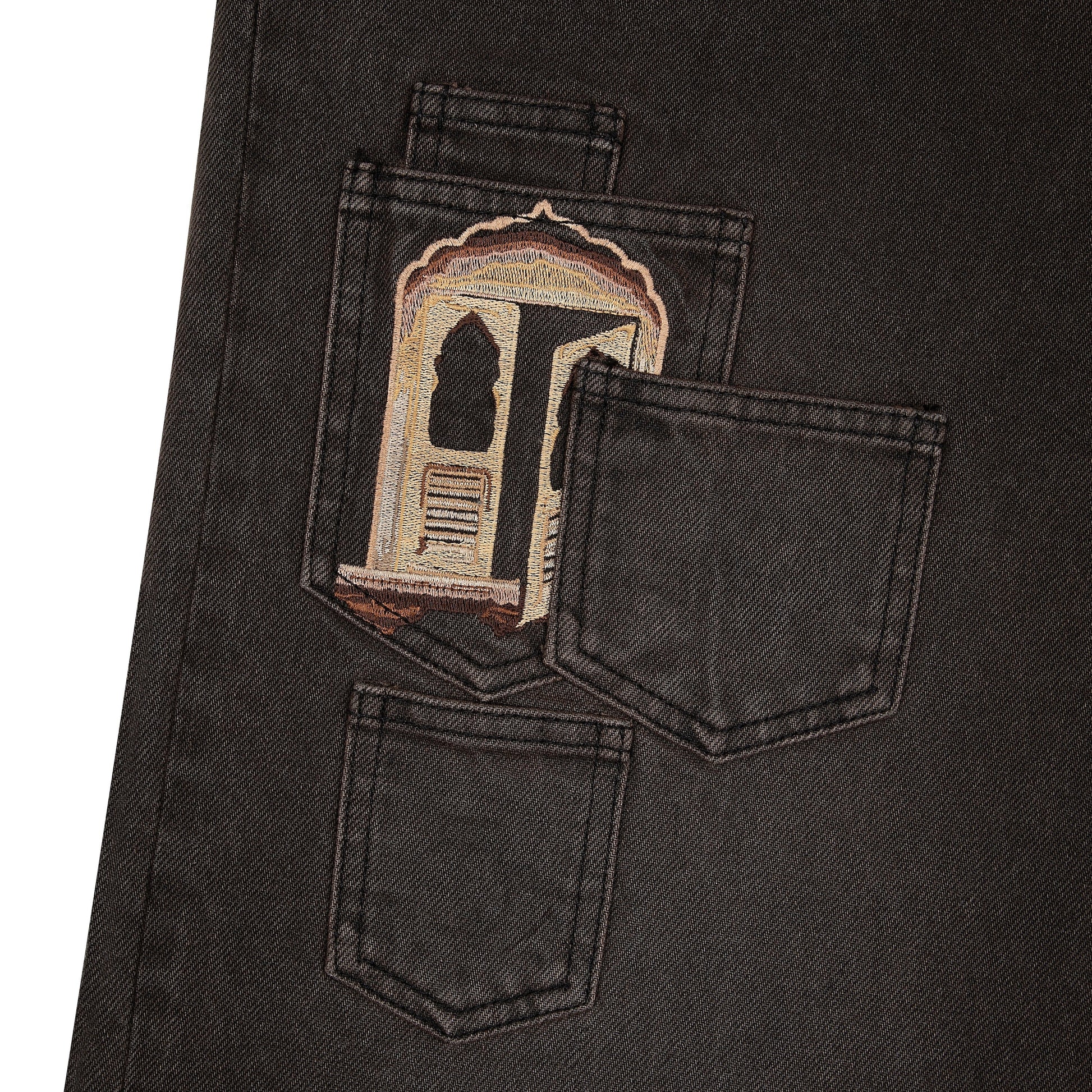 14,5oz denim / 100% cotton / pocket details on front / embroideries on front and back /?debossed printed leather patch / custom button / fits true to size / all profits will be donated