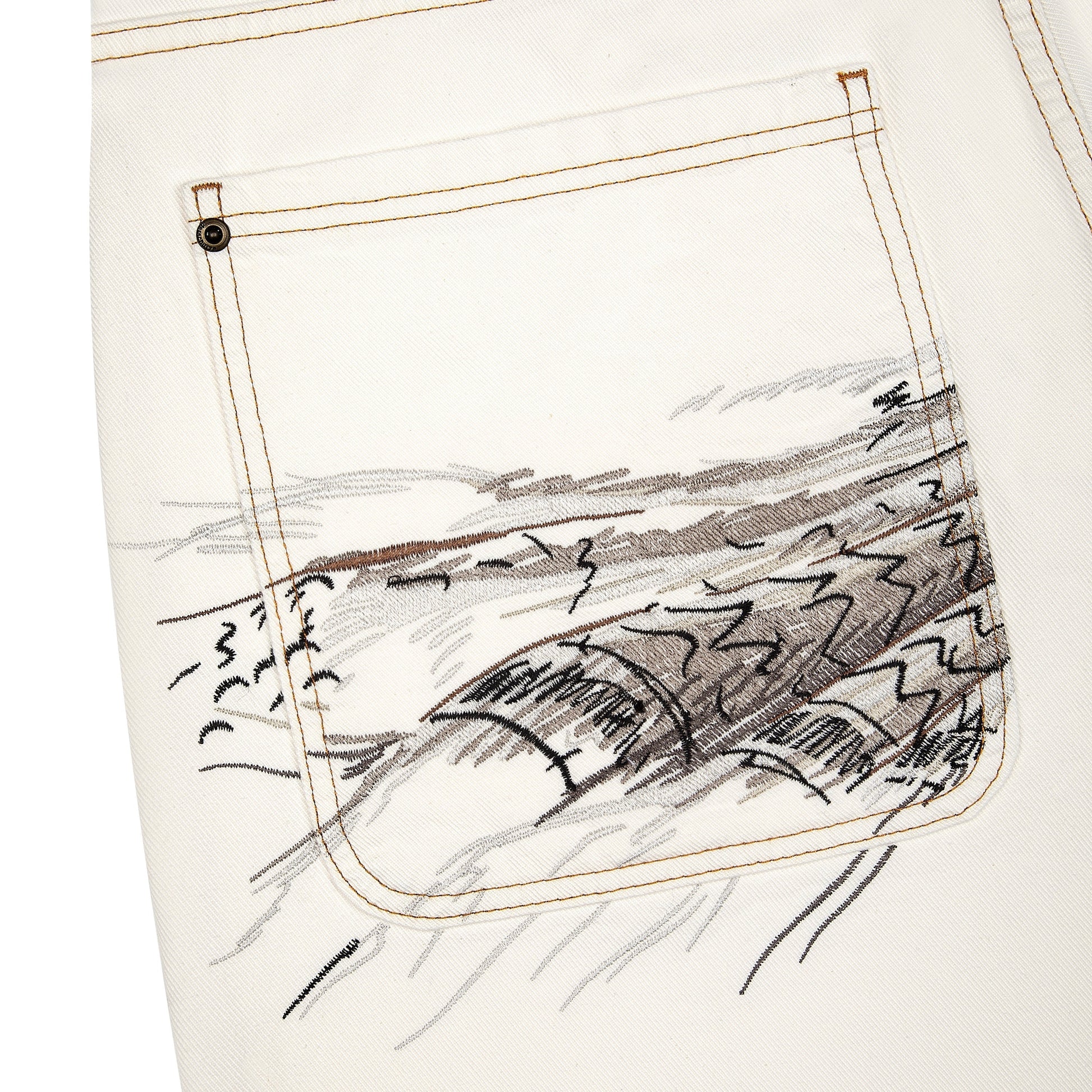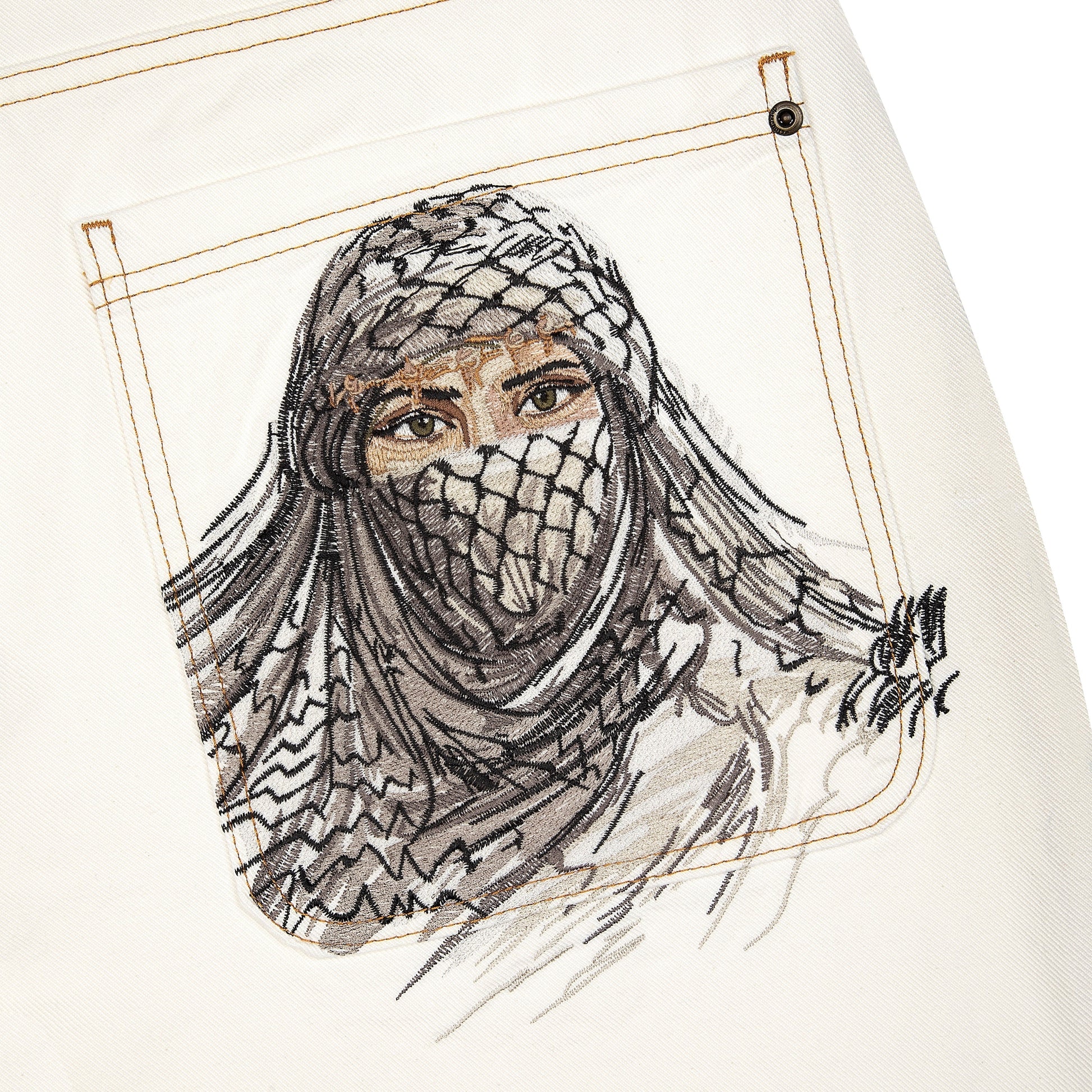 14,5oz raw denim / 100% cotton / embroidery on back / deboss printed leather patch / custom button / fits true to size / all profits will be donated